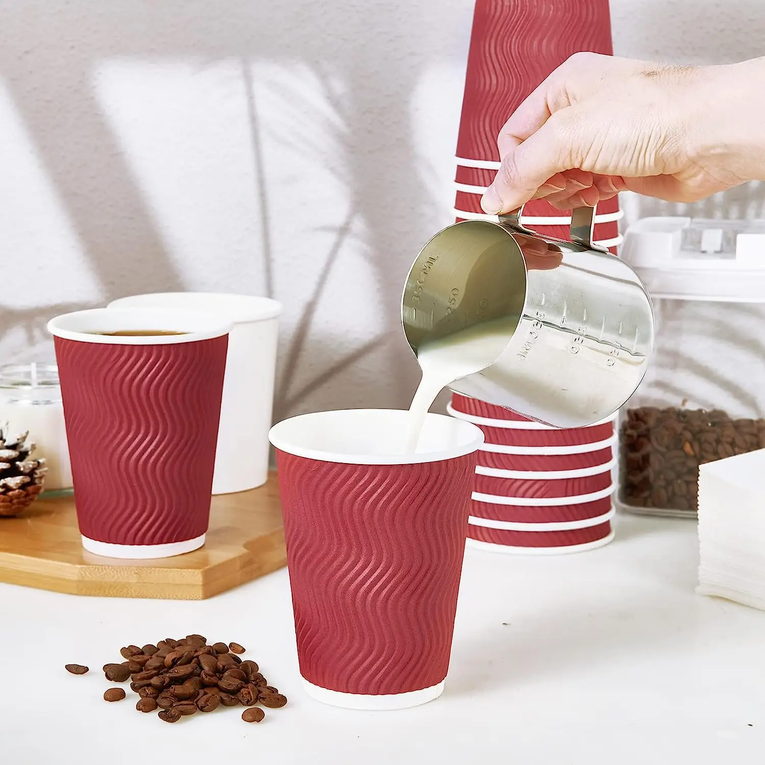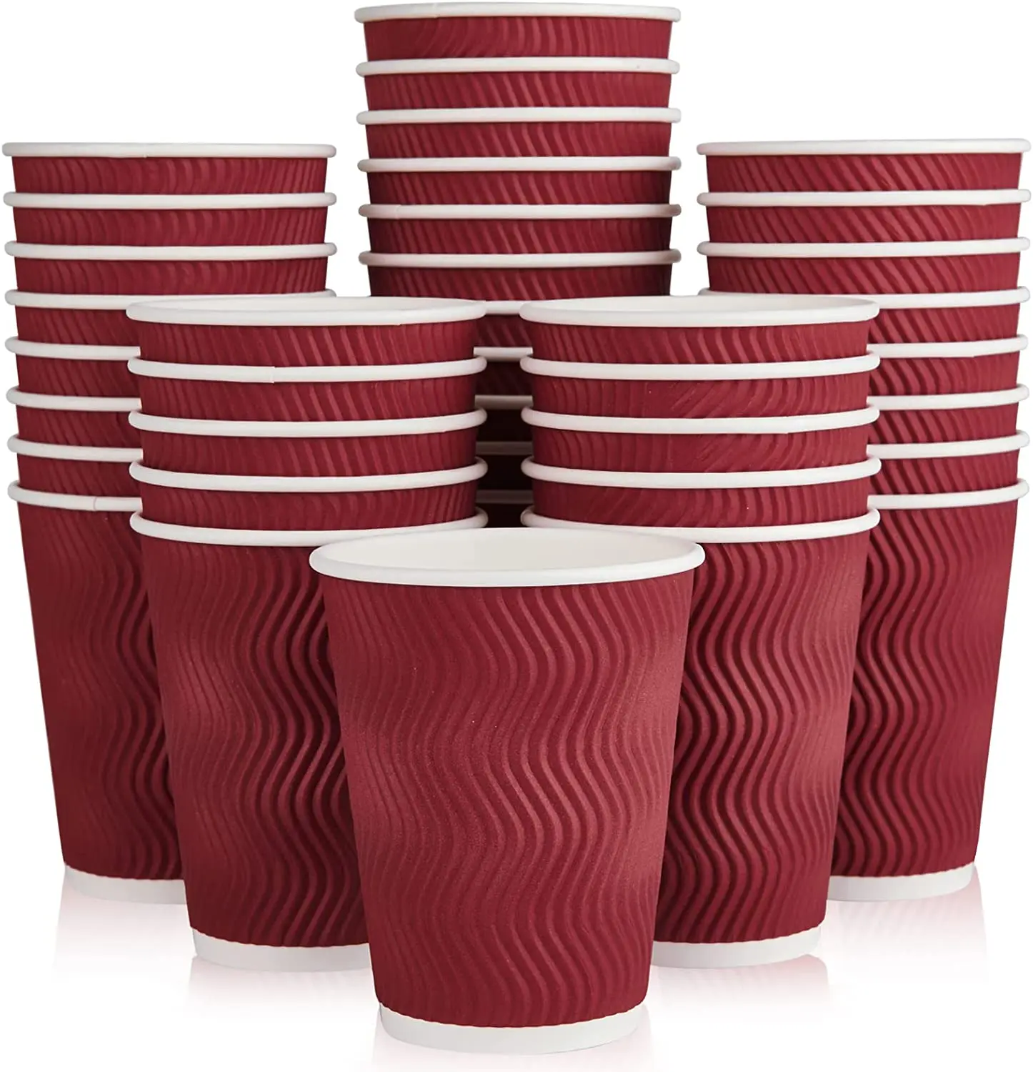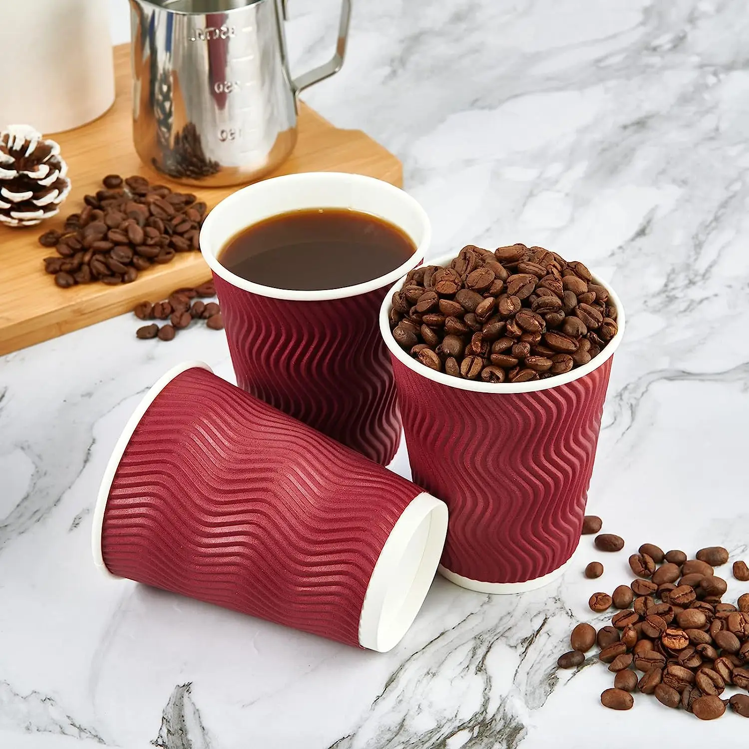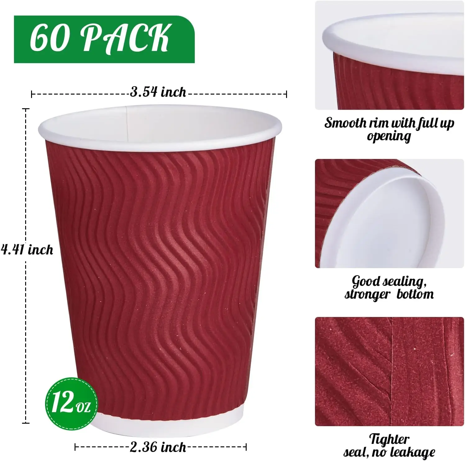 12 oz Corrugated Cold hot drinking Double Wall paper Cups with Lids eco friendly disposable paper coffee cup with lids and logo