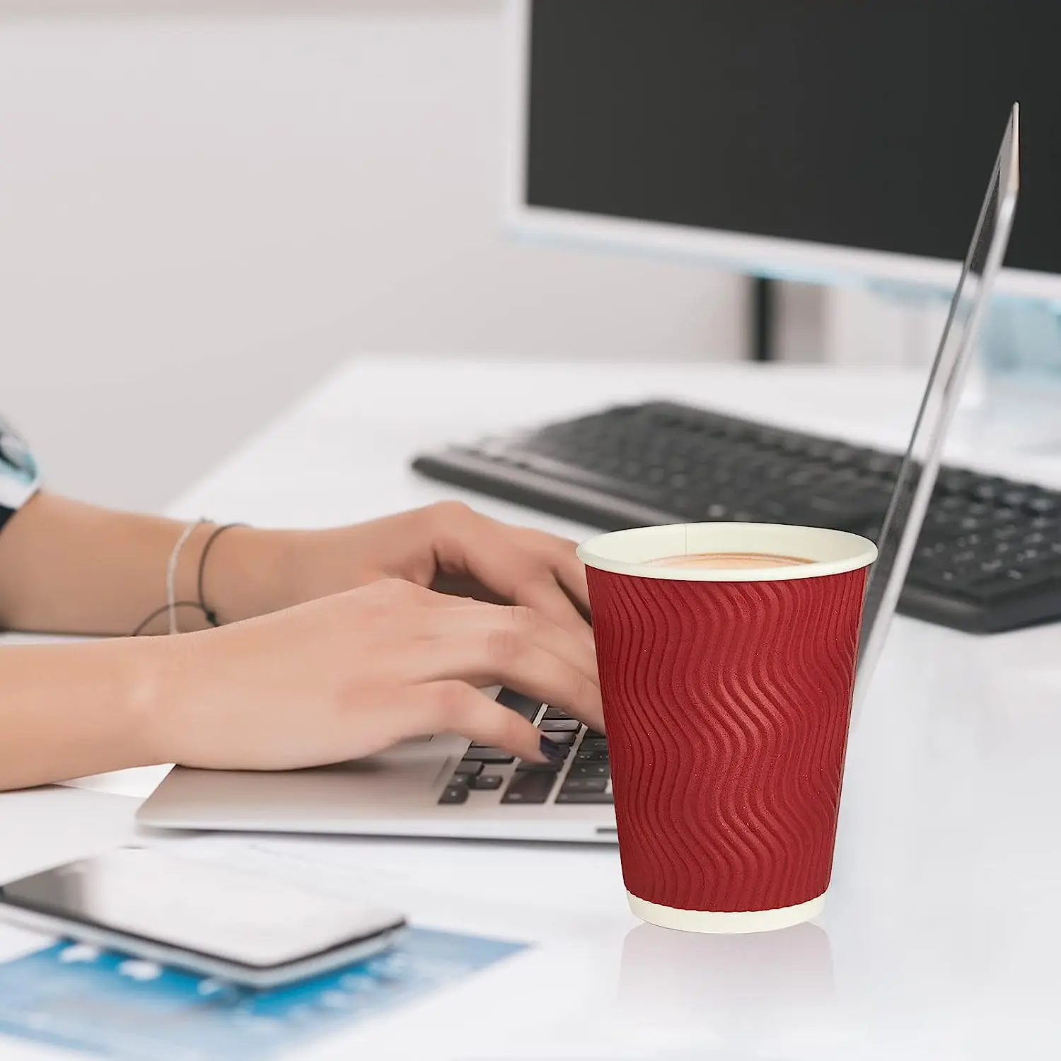 Home Hospitality Supplies Paper Products & Printing Products Yiwu Gewuzhizhi Technology Co., Ltd. 12 oz Corrugated Cold hot drinking Double Wall paper Cups with Lids eco friendly disposable paper coffee cup with lids and logo