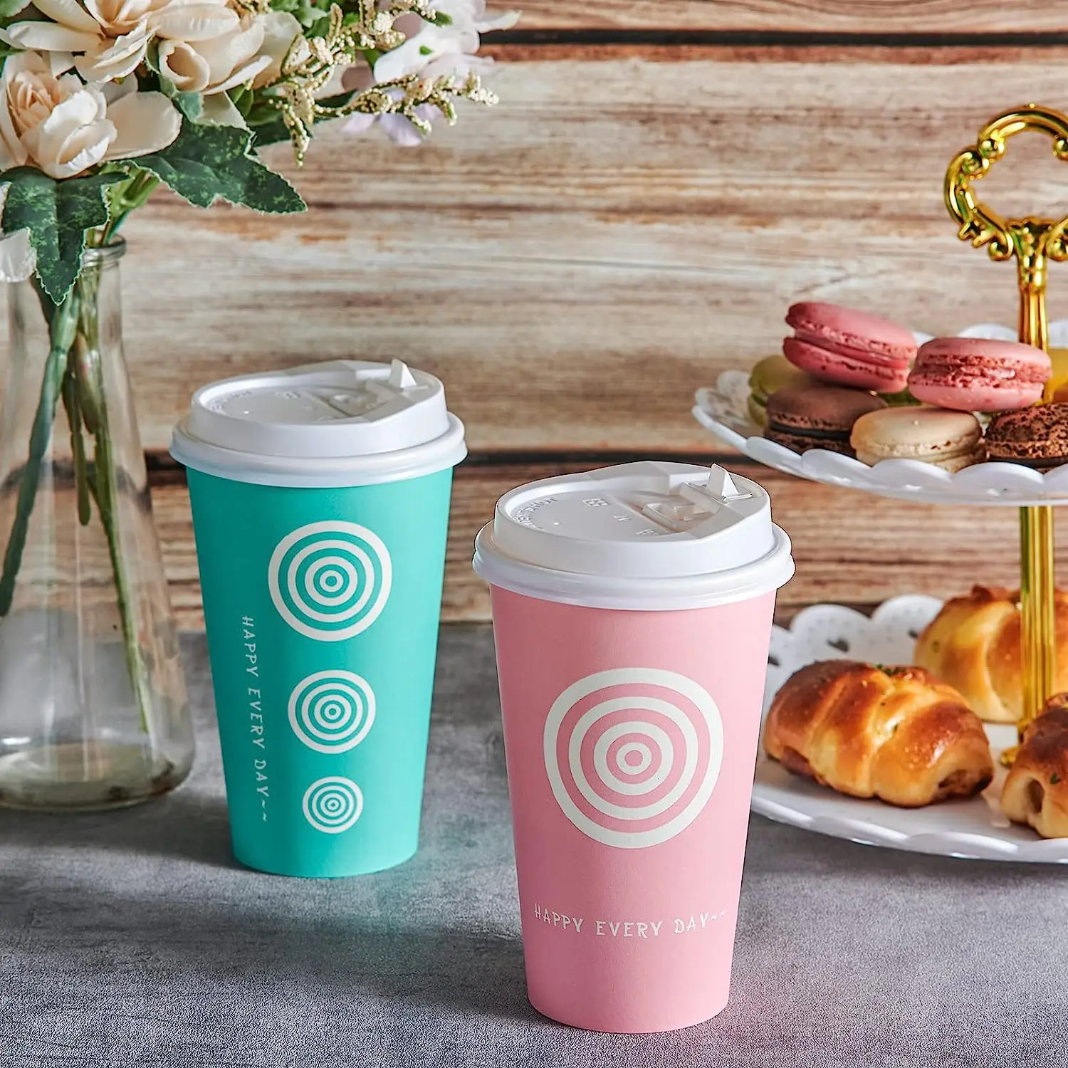 16 oz custom Single Wall Disposable Cups with Lids and Sleeves eco friendly disposable paper coffee cup with lid logo
