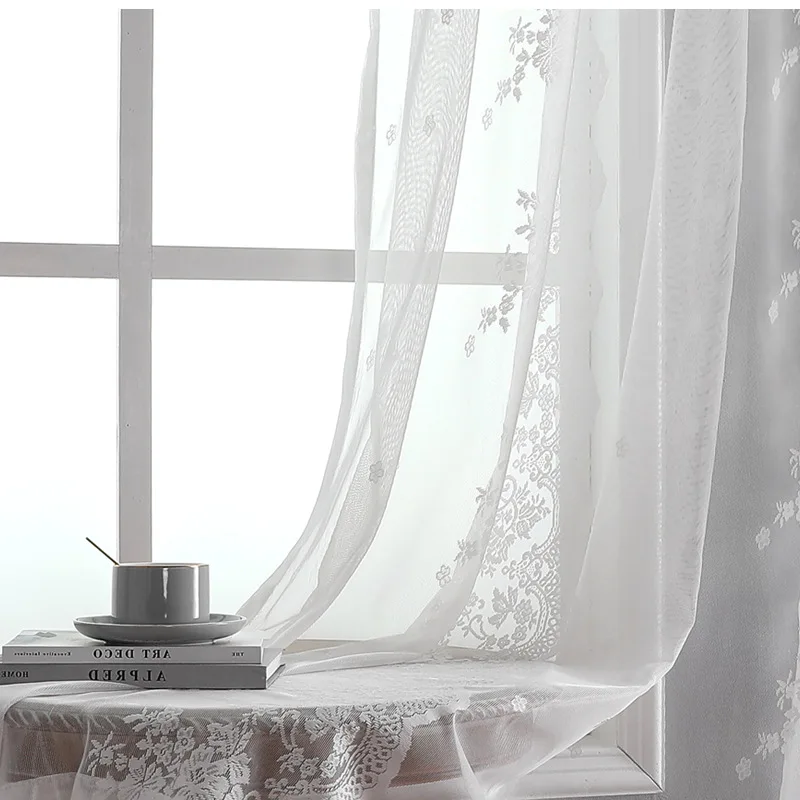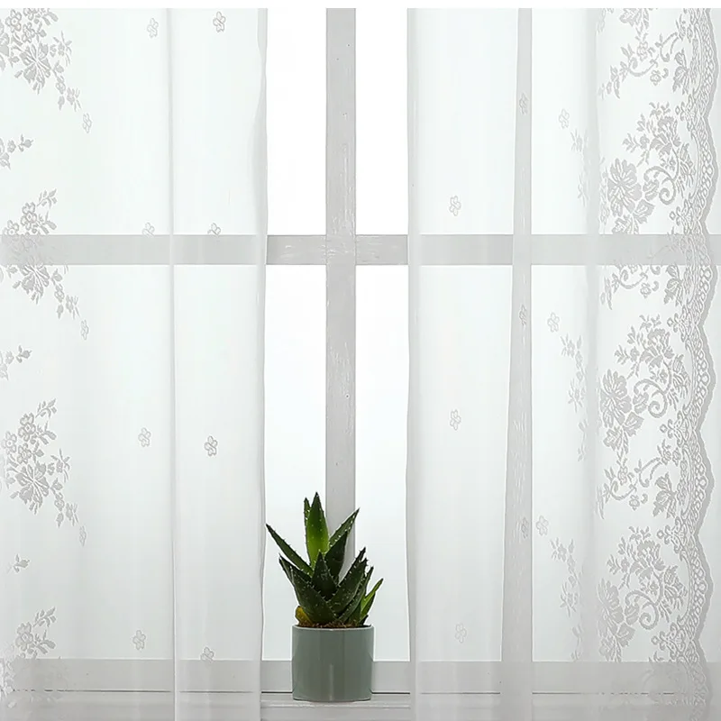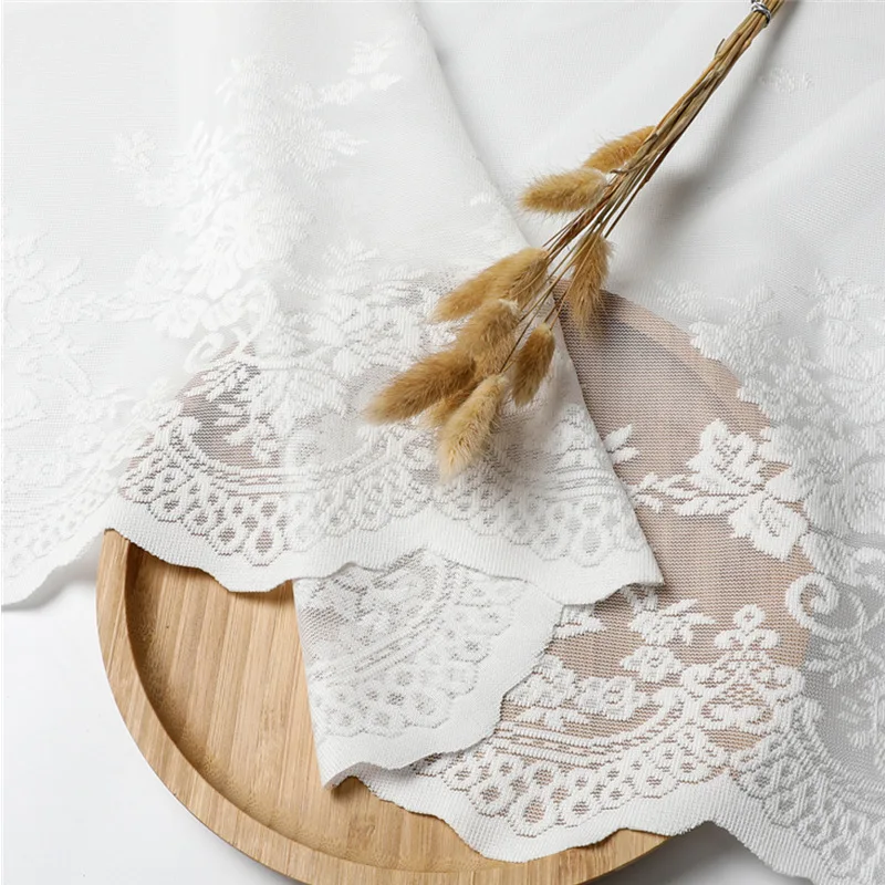 French White Lace Living Room Drapes Sheer Tulle Curtains Lace Trim For Home Bedroom Windows