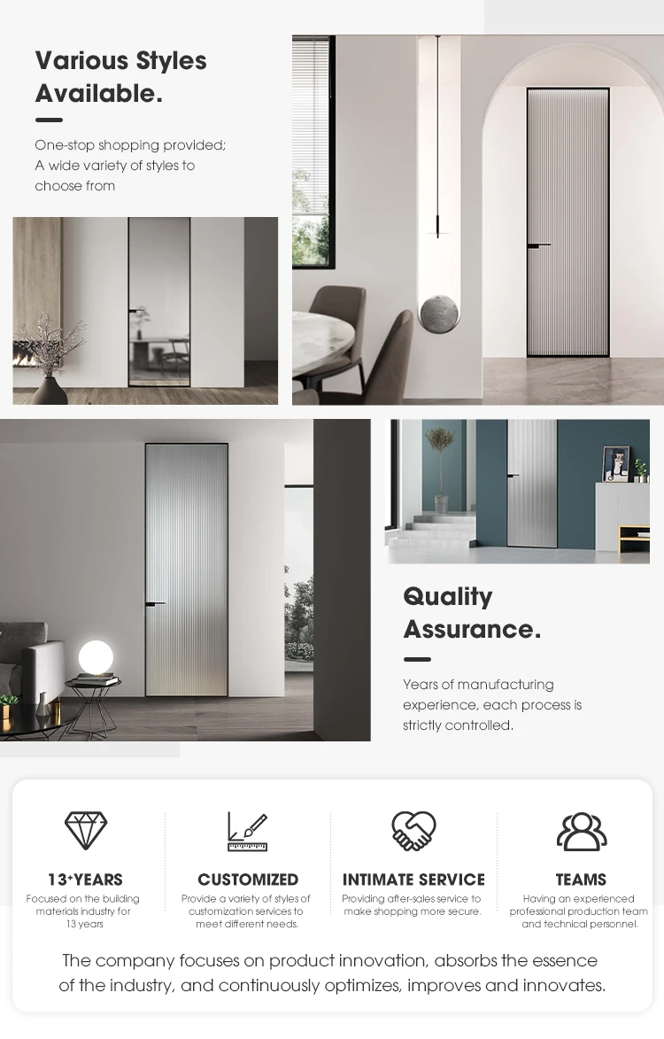 Modern Design Casement Door Soundproof Bedroom Interior Door Aluminum Frame Wooden Door