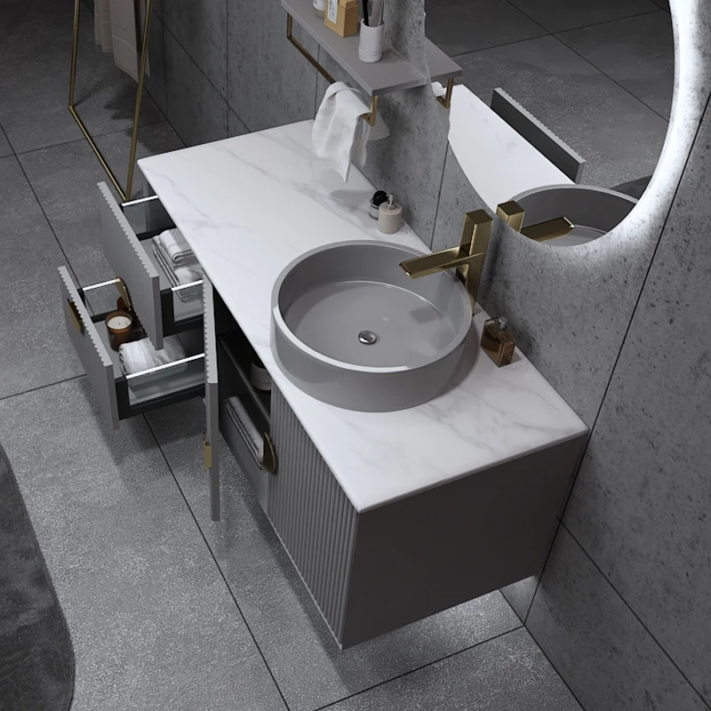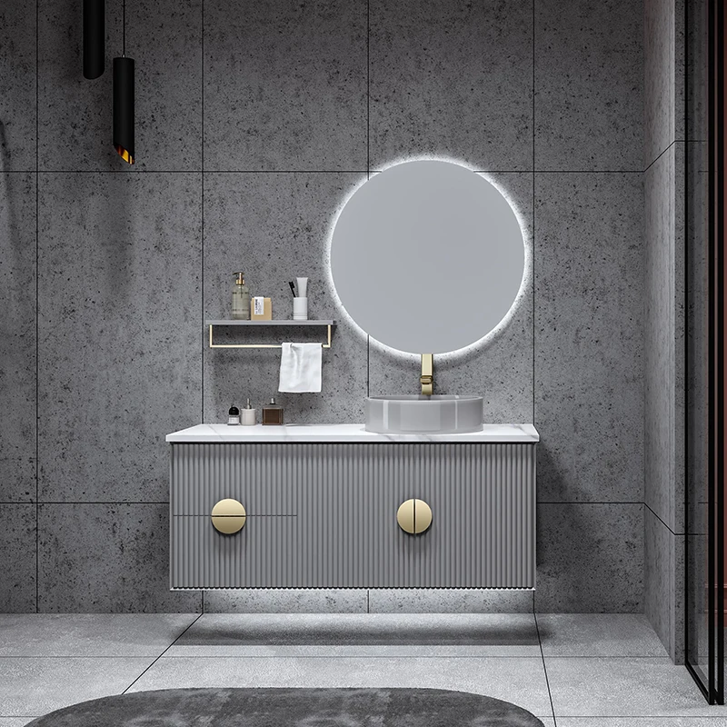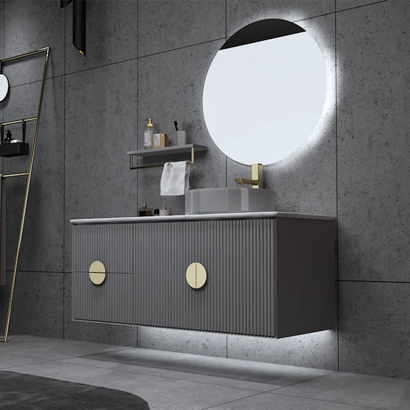 7124 Modern LED Bathroom Vanity Wall Installation Sink Washroom Vanities Gray Customized Style