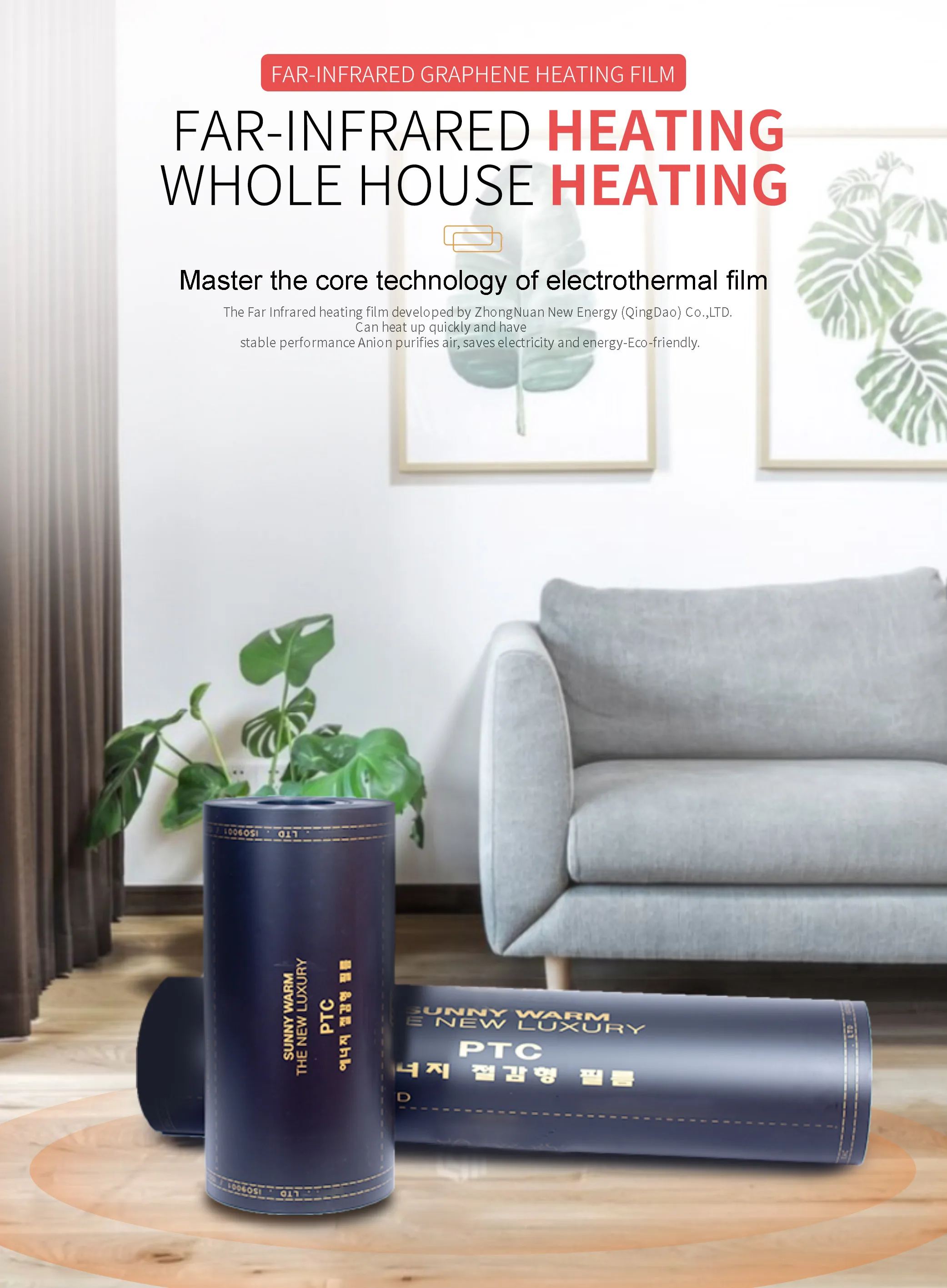 Home Stone,Tiles,Flooring & Walls Material Heating Flooring System Electric Heating System Zhongnuan New Energy (qingdao) Co., Ltd. Energy Saving Indoor Floor Heating Systems Infrared Carbon Heating Film