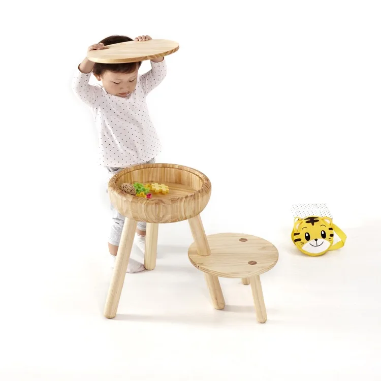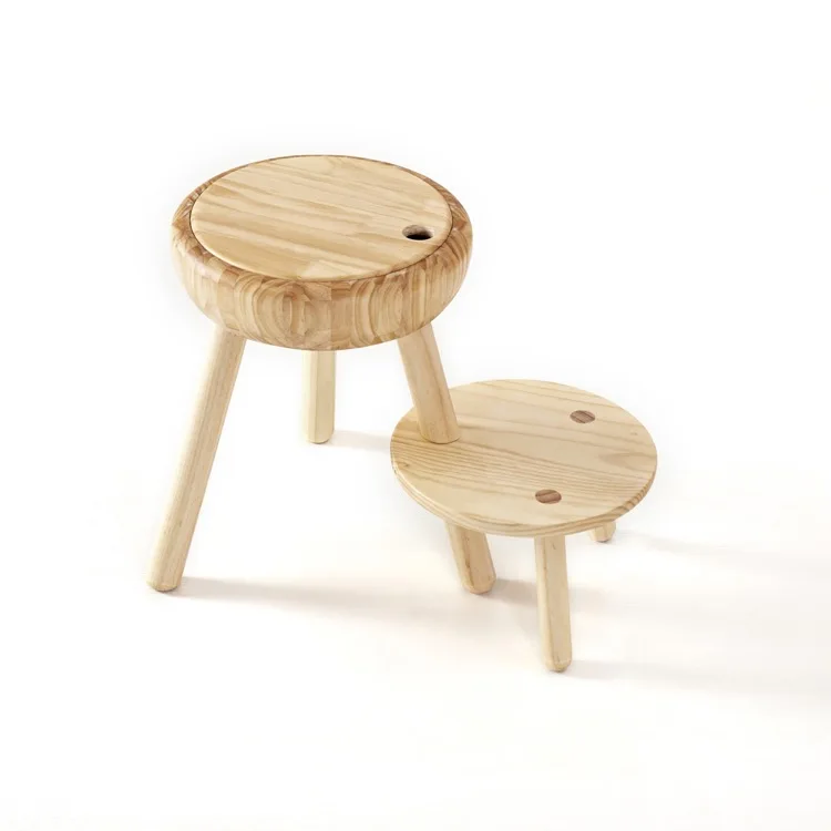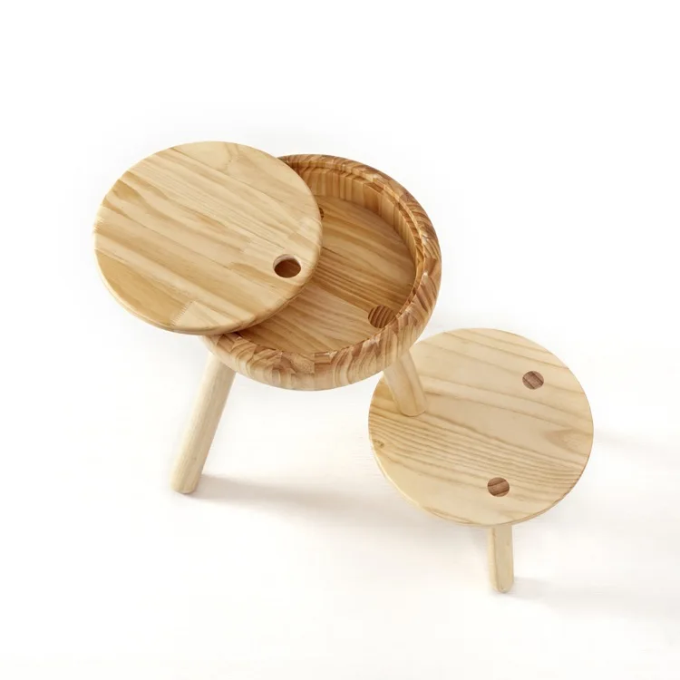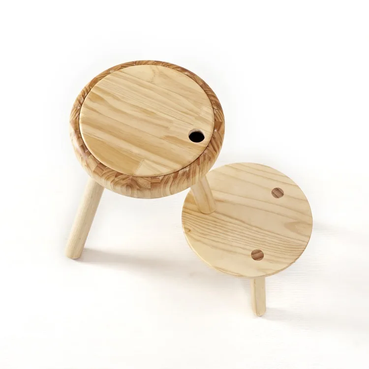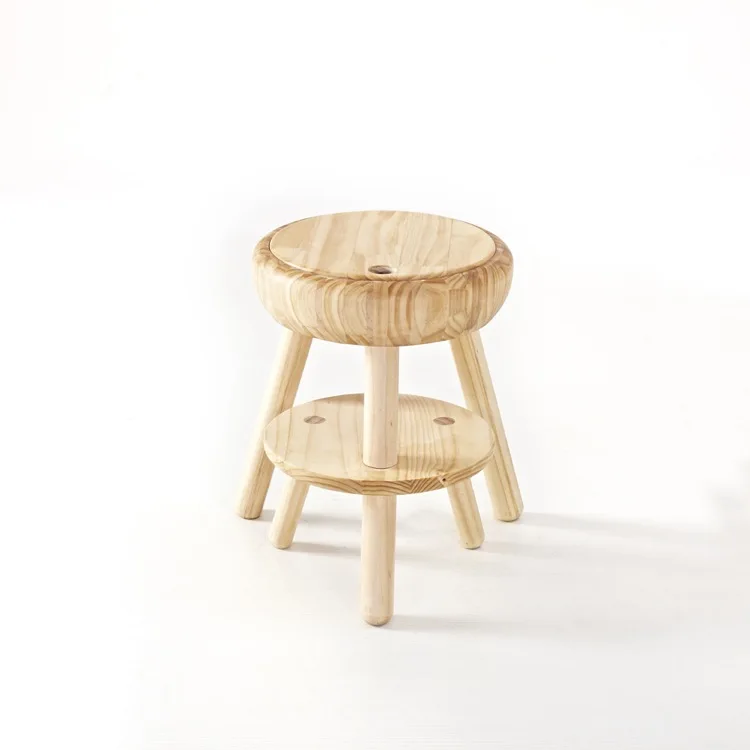 Warm Home Furniture Sets Round Removable Storage Box Footstool Ottomans, Child Wooden Footrest and Modern Folding Stool Chairs