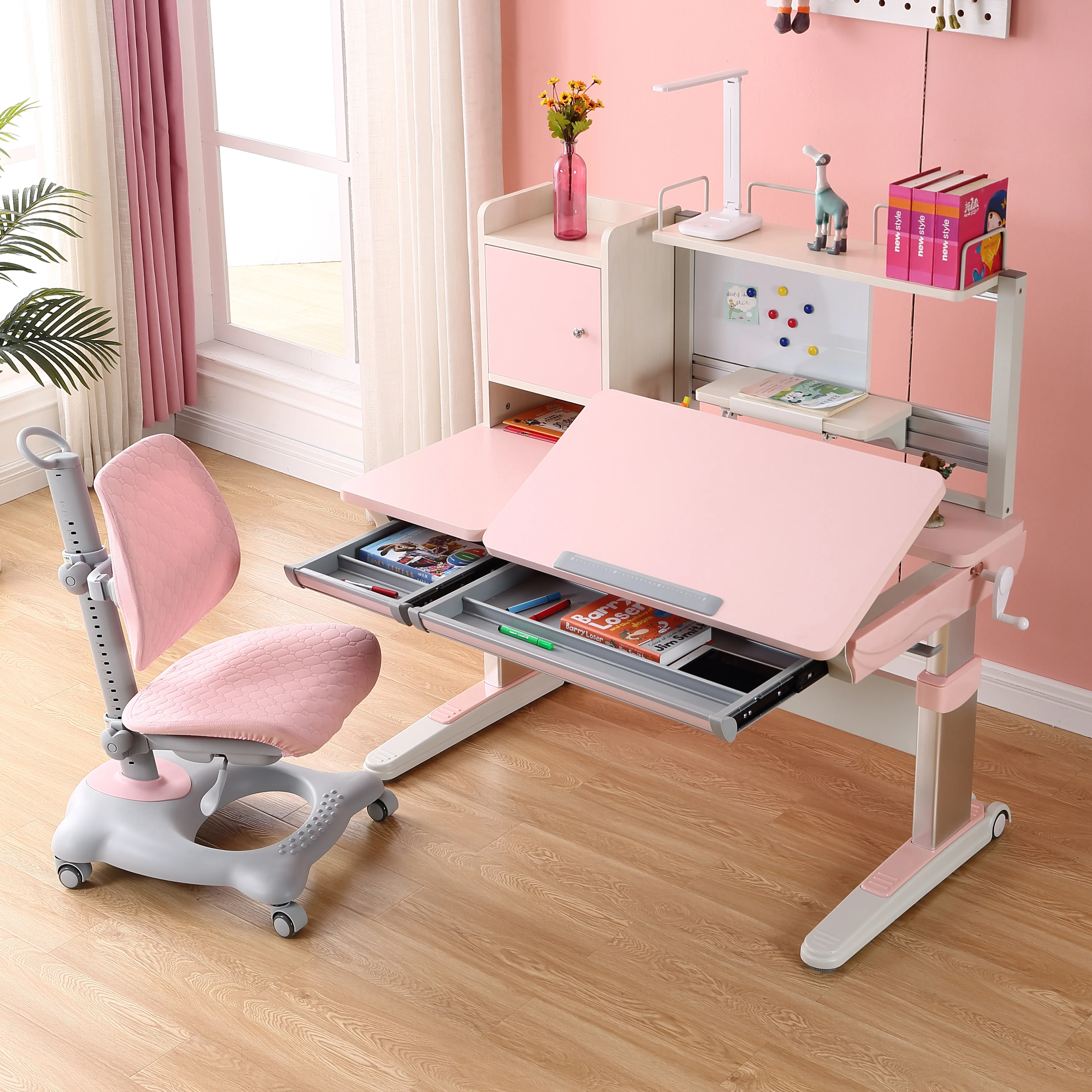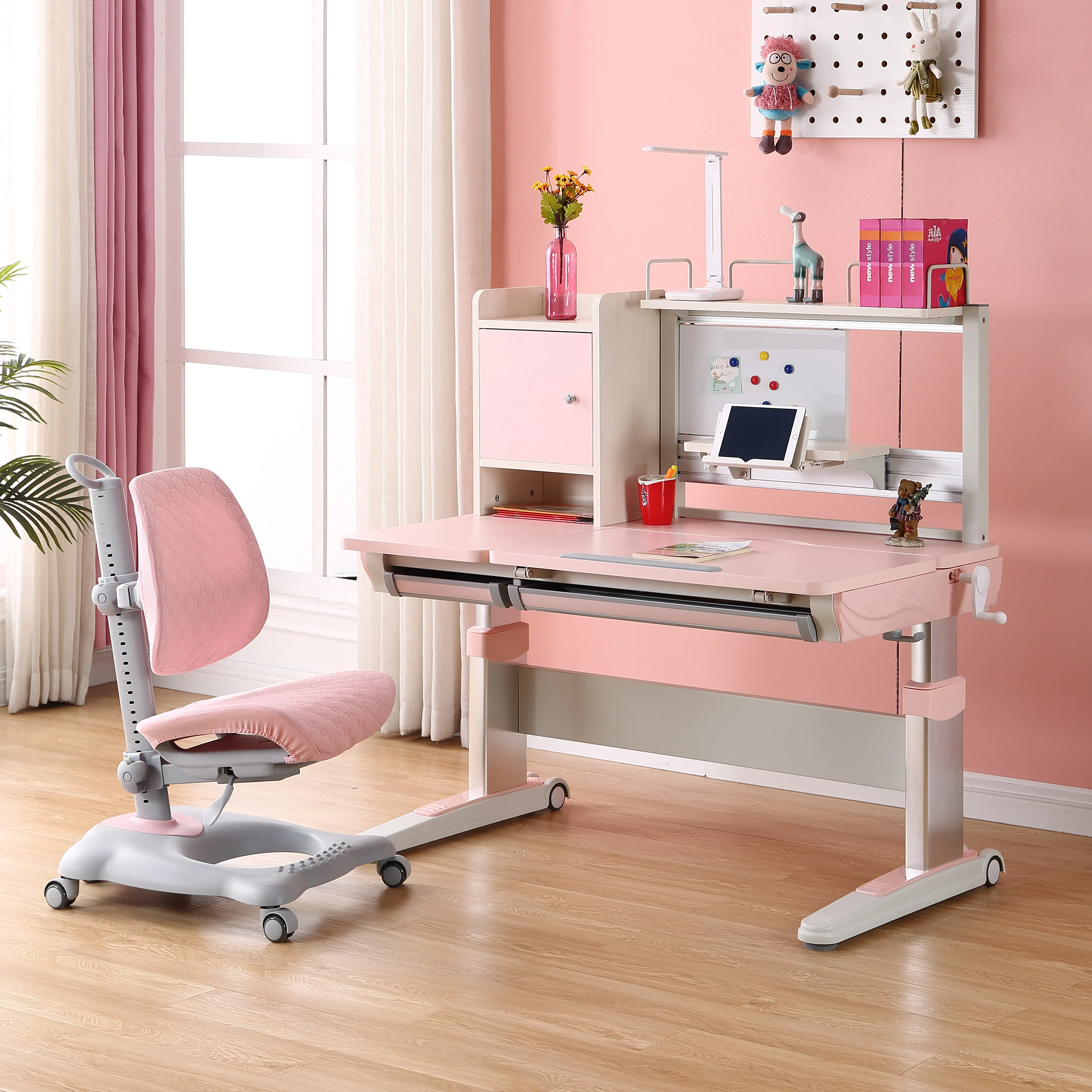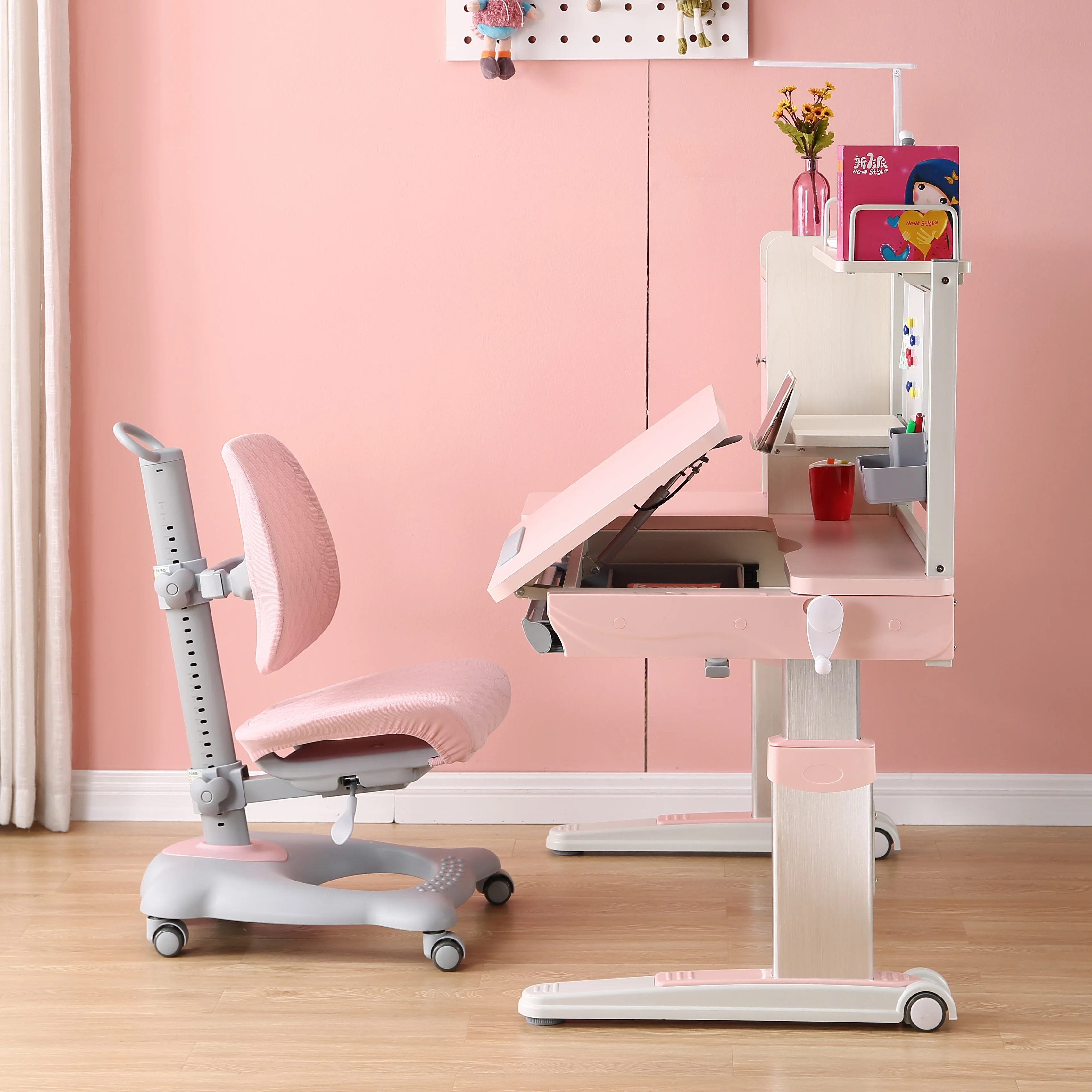 Home Movable Housing Furniture & Household Appliances Children Furniture Children's Tables Jiangmen Xinyilong Intelligence Technology Co., Ltd. Princess color ergonomic adjustable children study table and chair at home