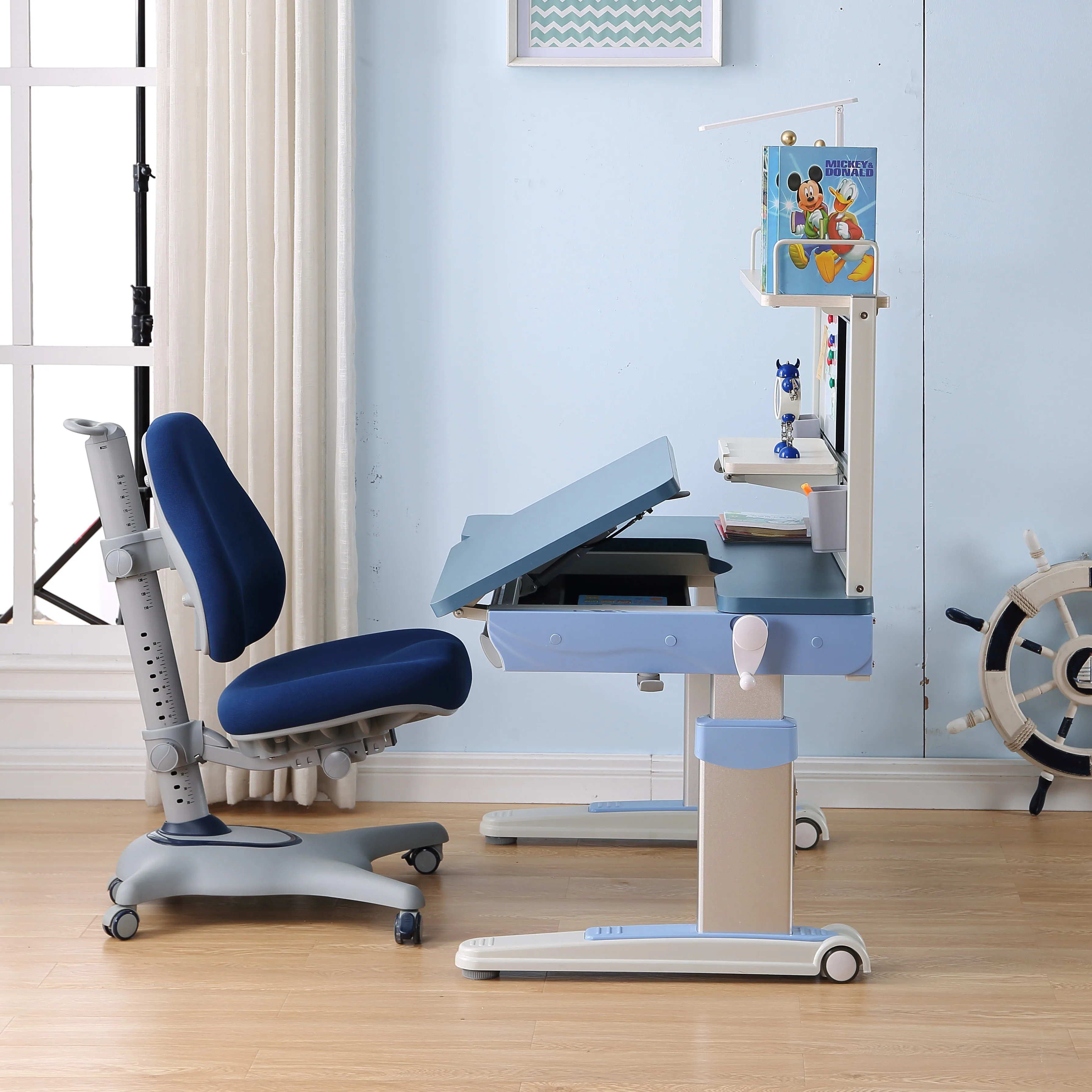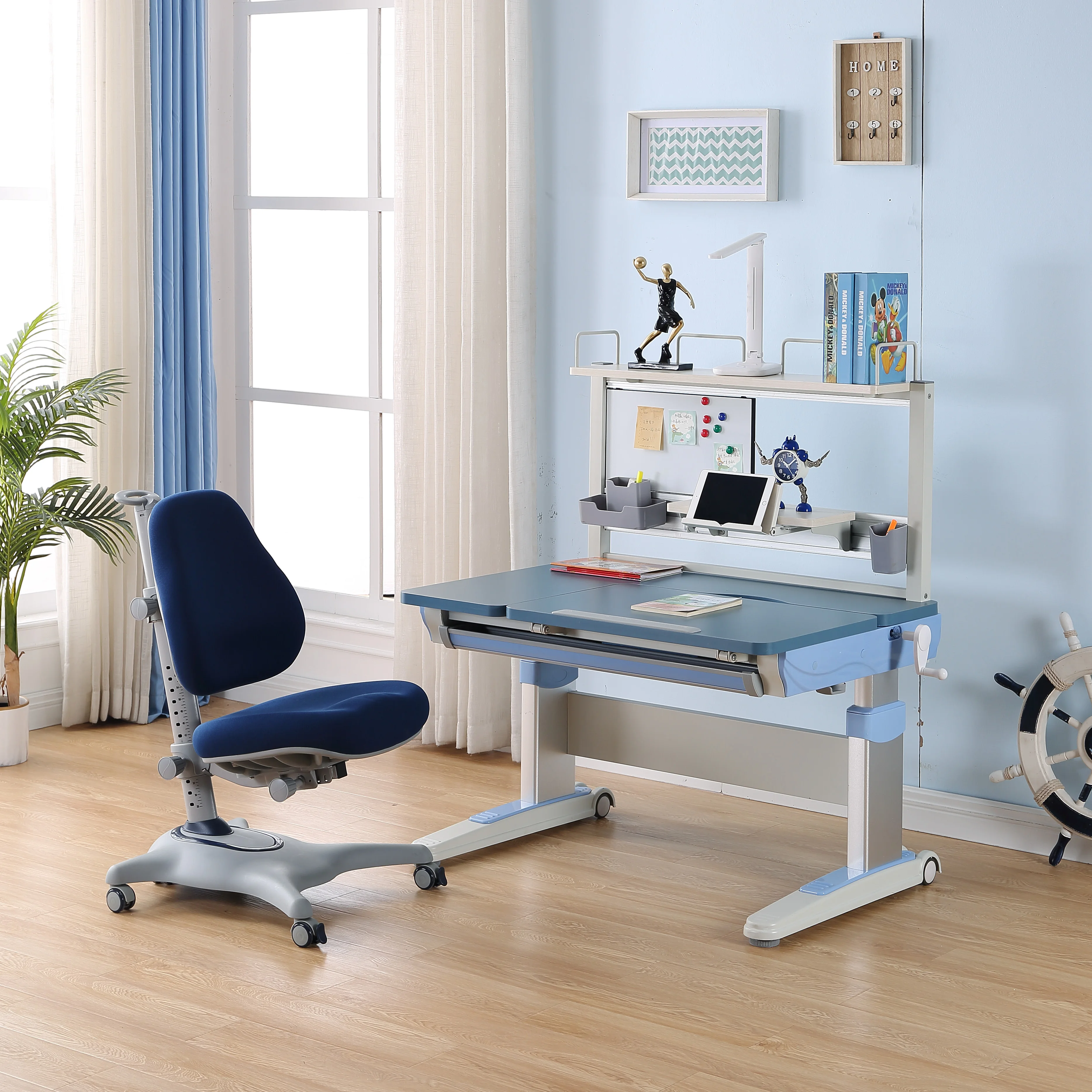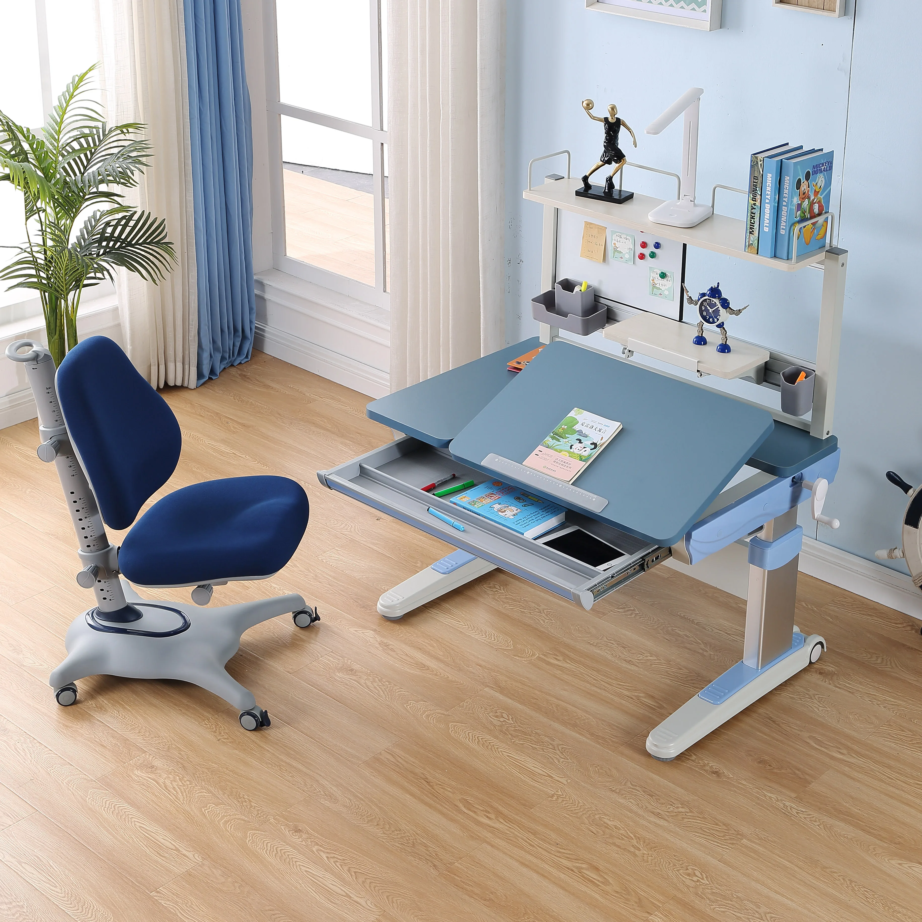 Kids high bookshelf writing board table desk