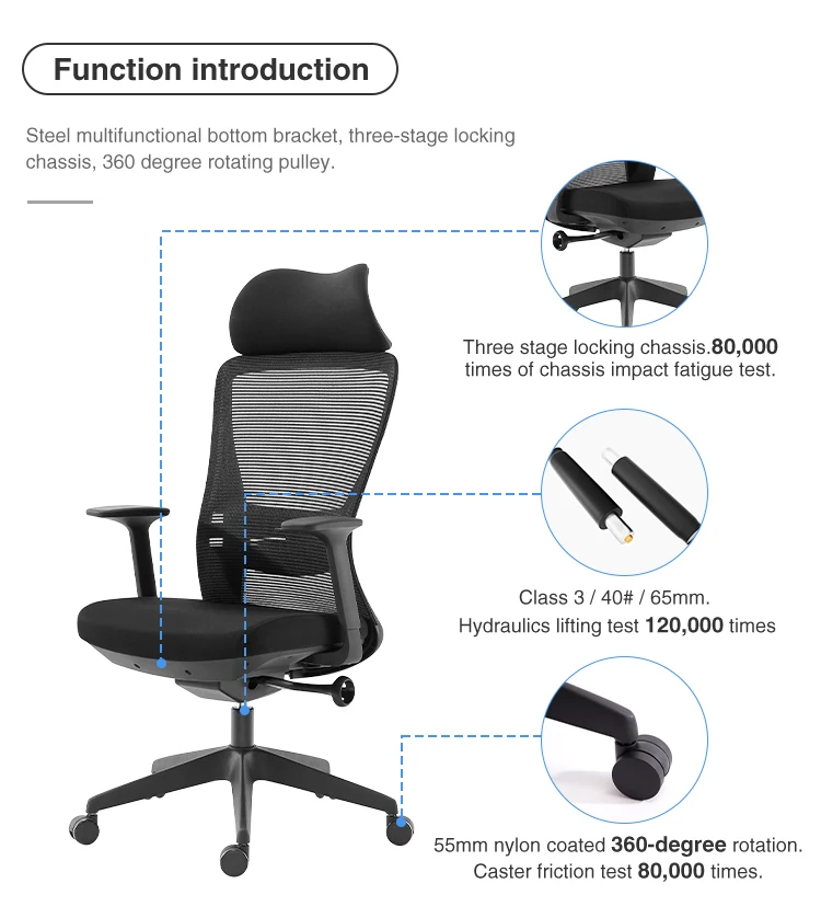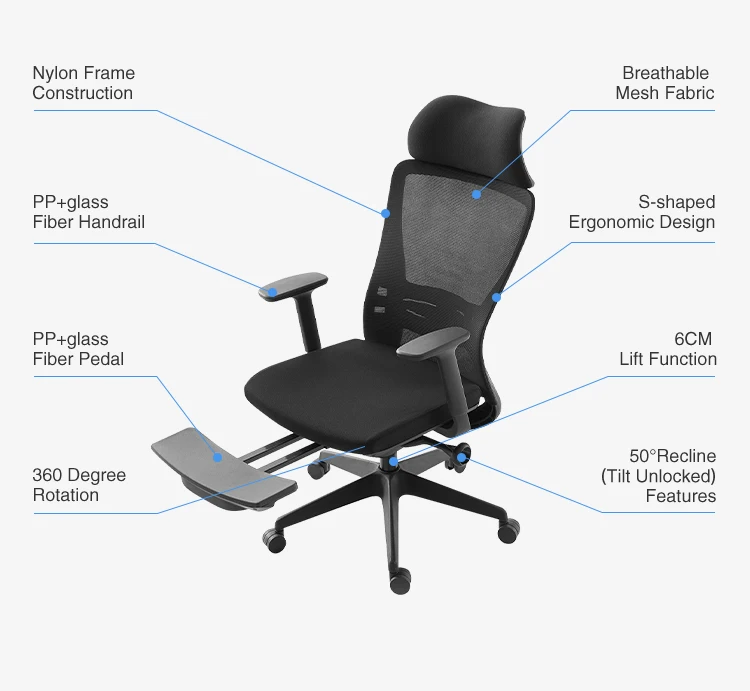 Black Office Furniture Silla De Oficina Height Adjustable Computer Ergonomic Office Chair With Footrest