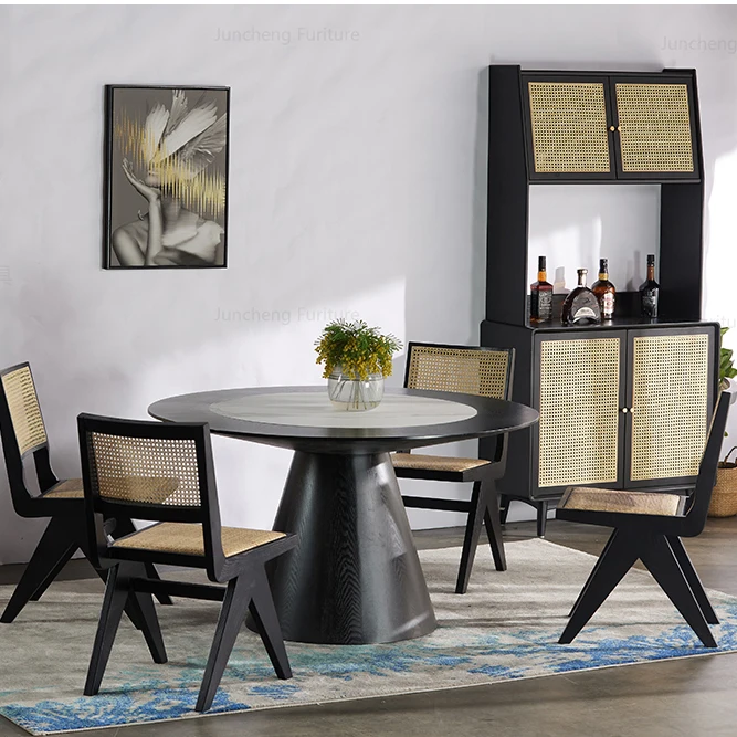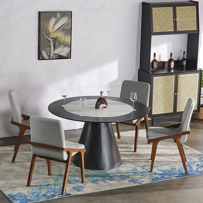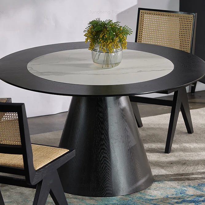 Nordic Modern Hotel Solid Wood Dining Room Furniture Table Stone Round Dining Table