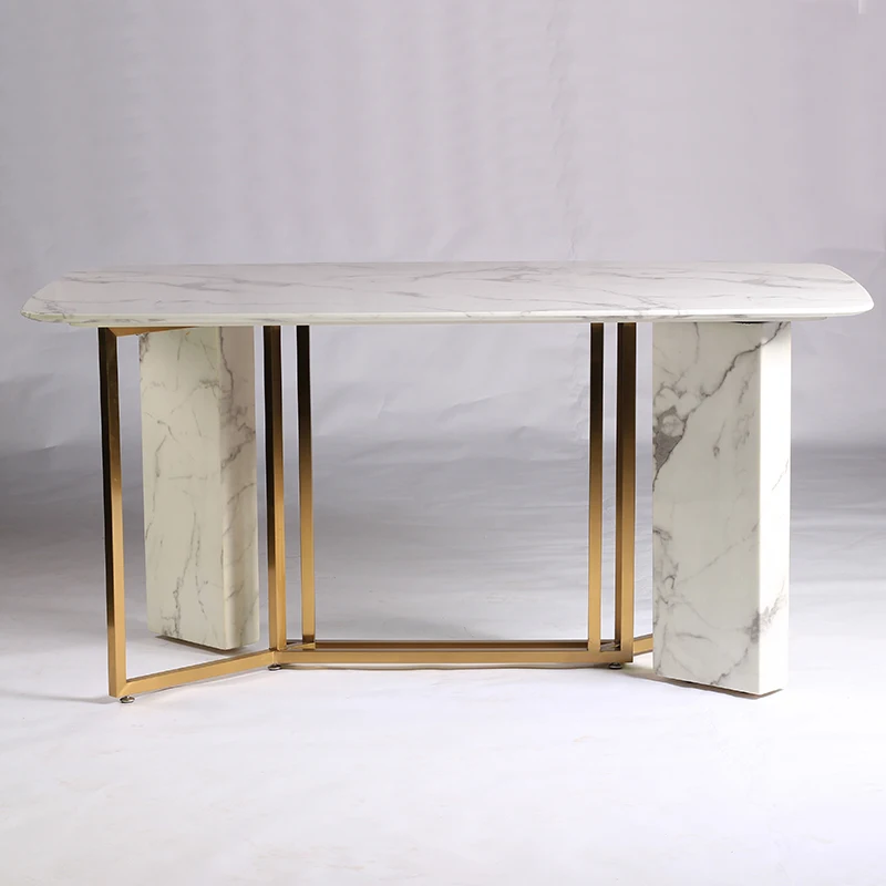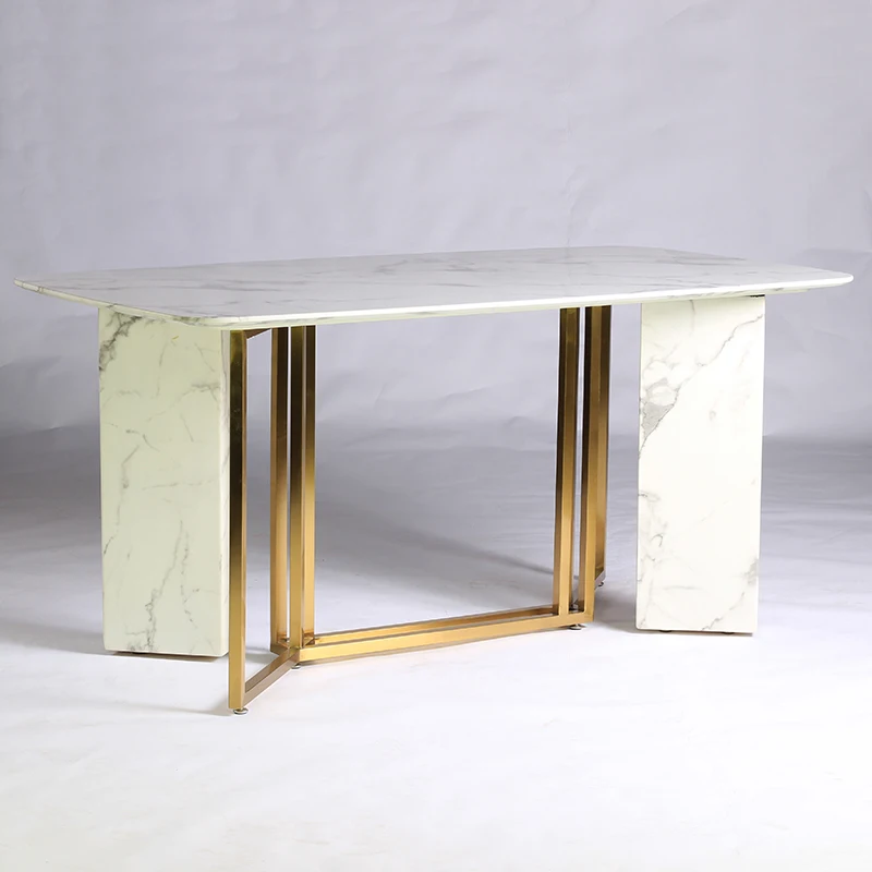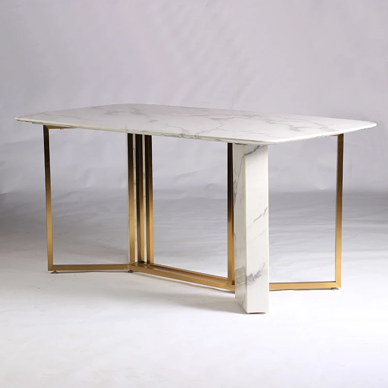 Nordic Luxury Design Modern Square Stone Top Dining Table Stone Metal Legs Dining Tables Dining Room