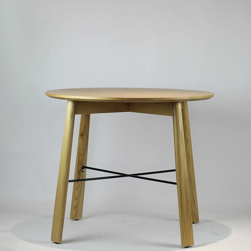 Nordic Dining Room Solid Wood Furniture Restaurant Wooden Metal Round Top Dining Table Wood