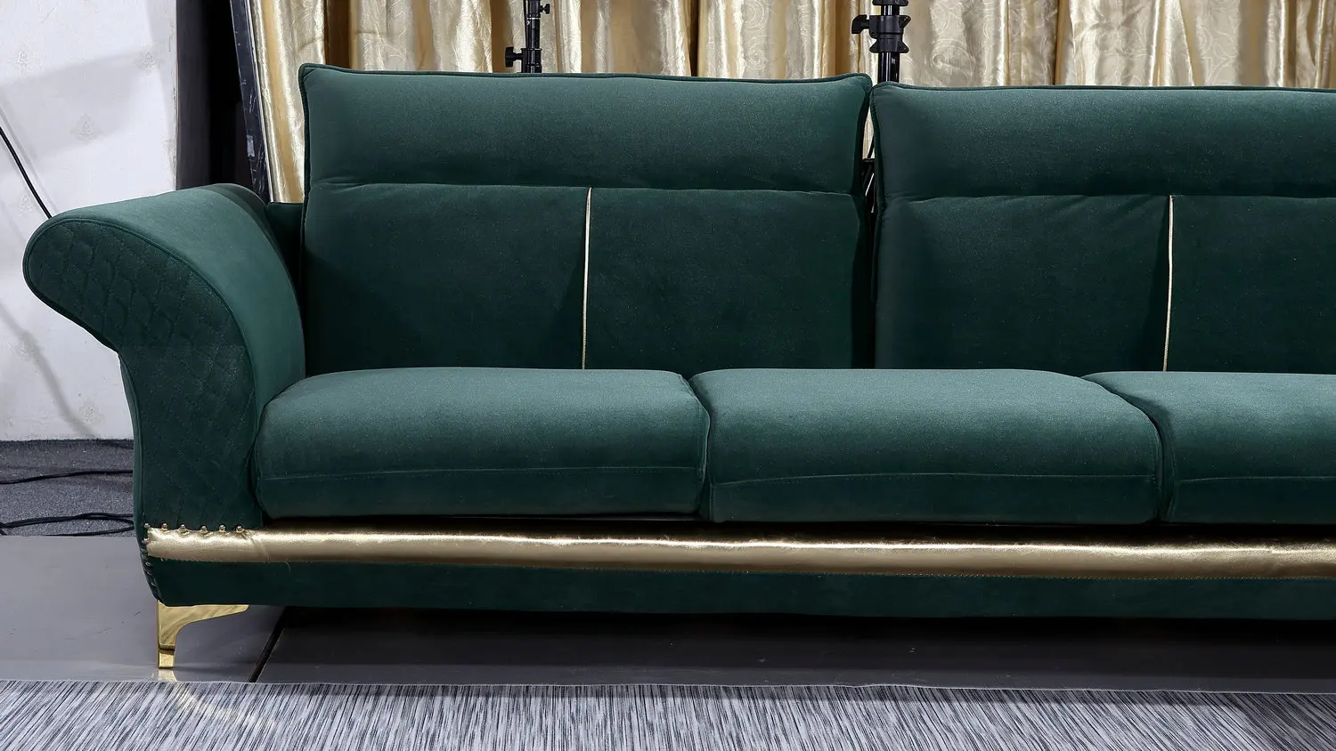 Green color affordable luxury L shape sleeper couch velvet fabric sofa