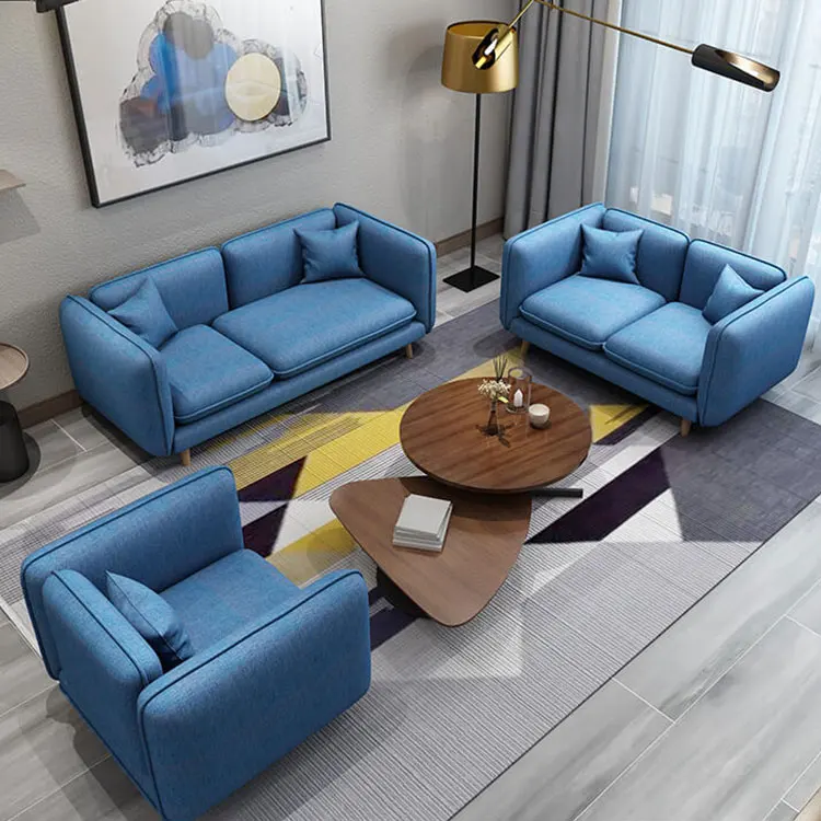 Home Movable Housing Furniture & Household Appliances Living Room Furniture Sofa Foshan Kika Furniture Co.,Ltd Blue color I shape cheap fabric lawson 3 seater sofa for home furniture