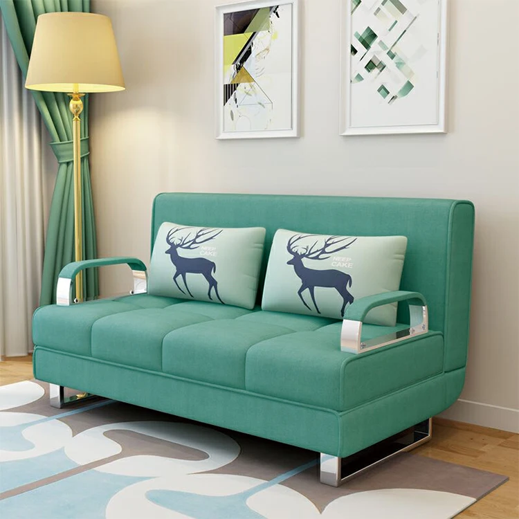 Home Movable Housing Furniture & Household Appliances Living Room Furniture Sofa Foshan Kika Furniture Co.,Ltd Blue color cheap transformable fabric sofa bed folding futon