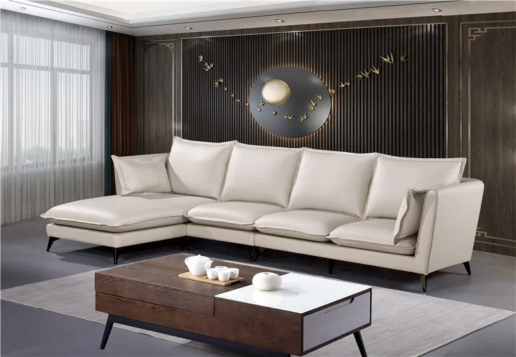 Home Movable Housing Furniture & Household Appliances Living Room Furniture Sofa Foshan Kika Furniture Co.,Ltd Simple design cream color living room furniture Nappa genuine leather lawson sofa (1104)