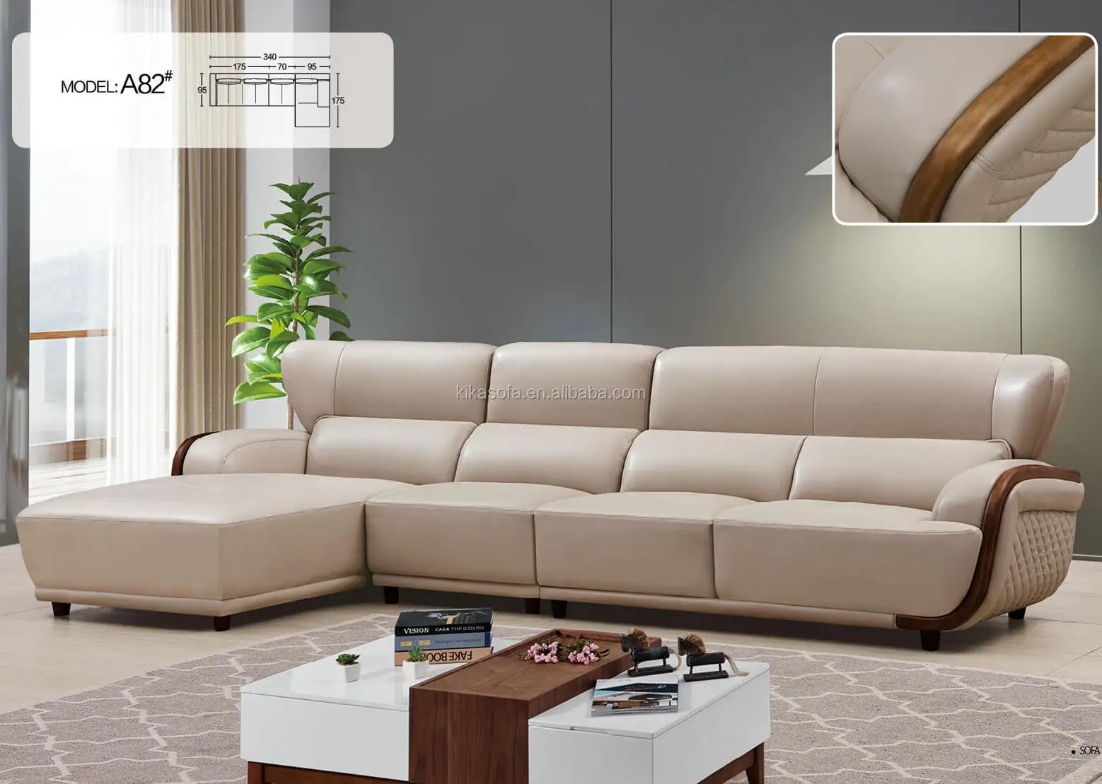 Home Movable Housing Furniture & Household Appliances Living Room Furniture Sofa Foshan Kika Furniture Co.,Ltd Cream L shape wholesale home furniture wood leather lawson sofa