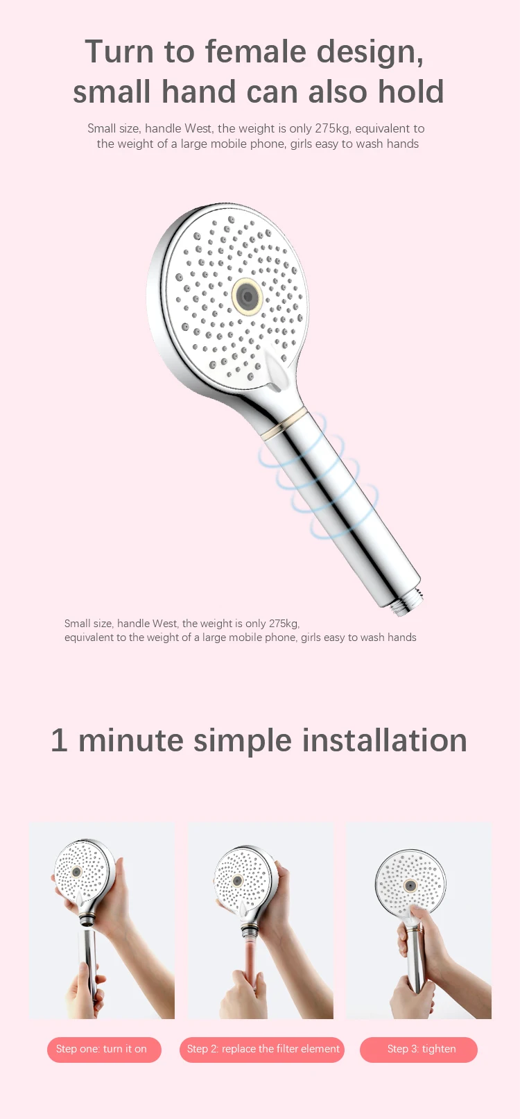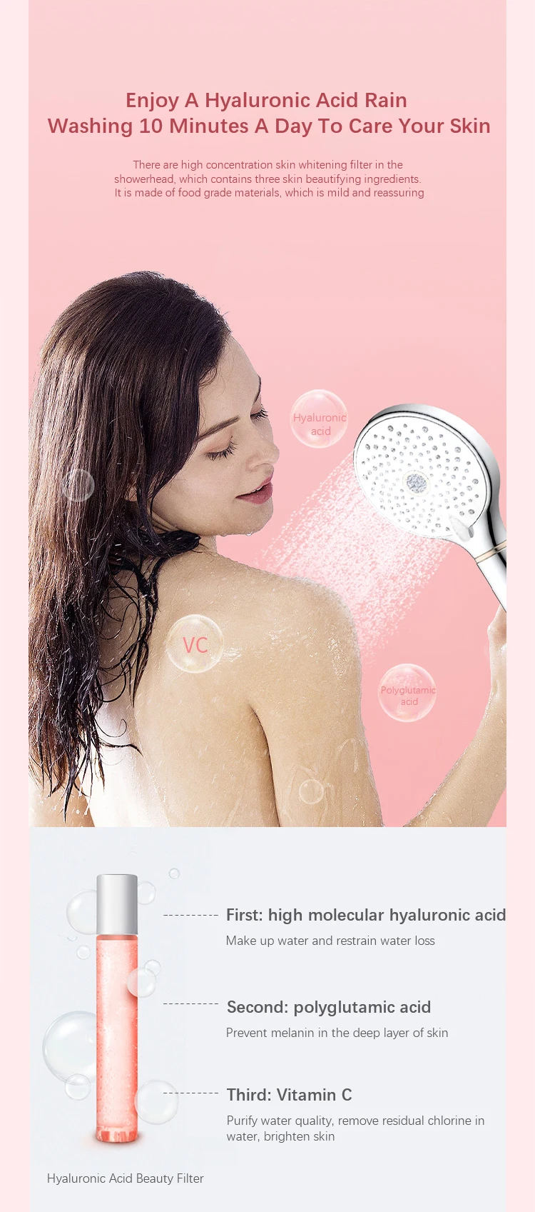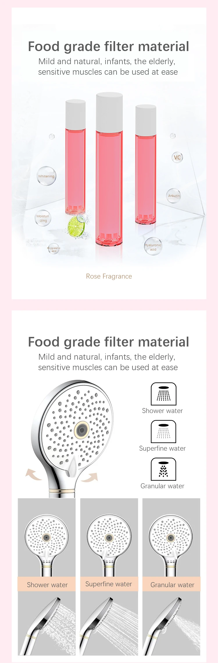 Luxury Design Skin Care High Pressure 3 Function Hand Shower With Vitamin C filter