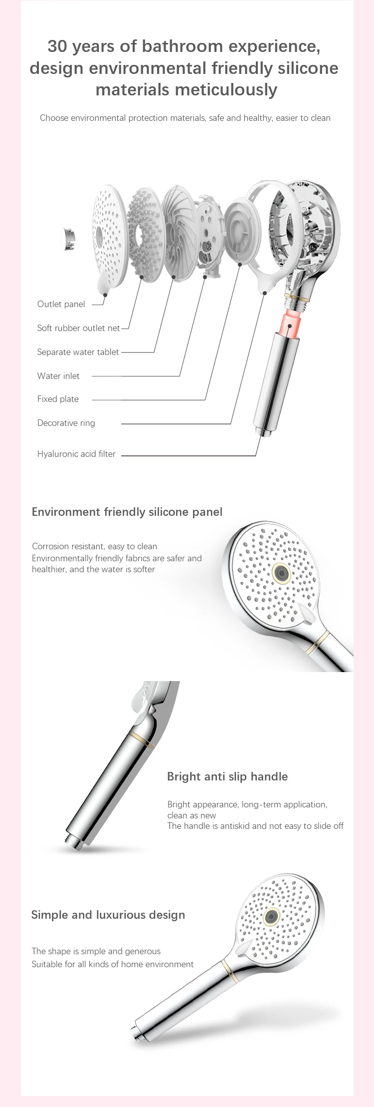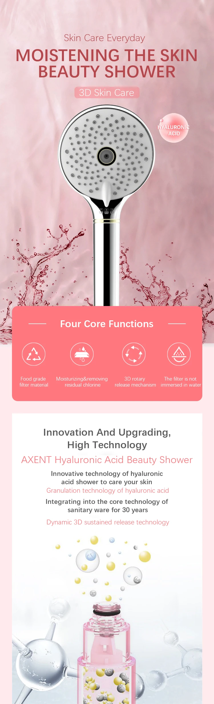 Home Bathroom Products,Sinks Bathroom Faucet & Shower Bathtub & Shower Faucet Accessories AXENT (Shanghai) Industry Co., Ltd. Luxury Design Skin Care High Pressure 3 Function Hand Shower With Vitamin C filter