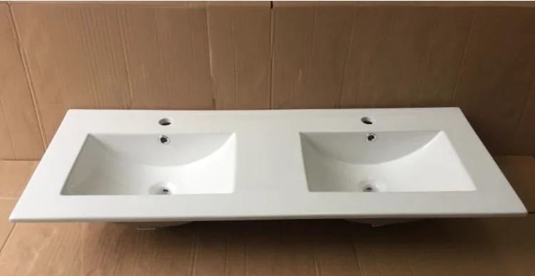 CE Approved bathroom basin Thin edge rectangular ceramic sinks cabinet double bowl wash basin