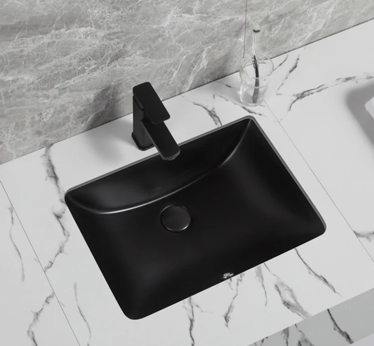 CUPC Approved face wash Black Color ceramic rectangular sink undermount bathroom cabinet basin