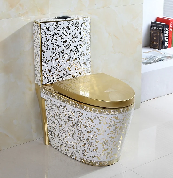 Chaozhou factory high quality ceramic sanitaryware one piece toilet western design gold toilet
