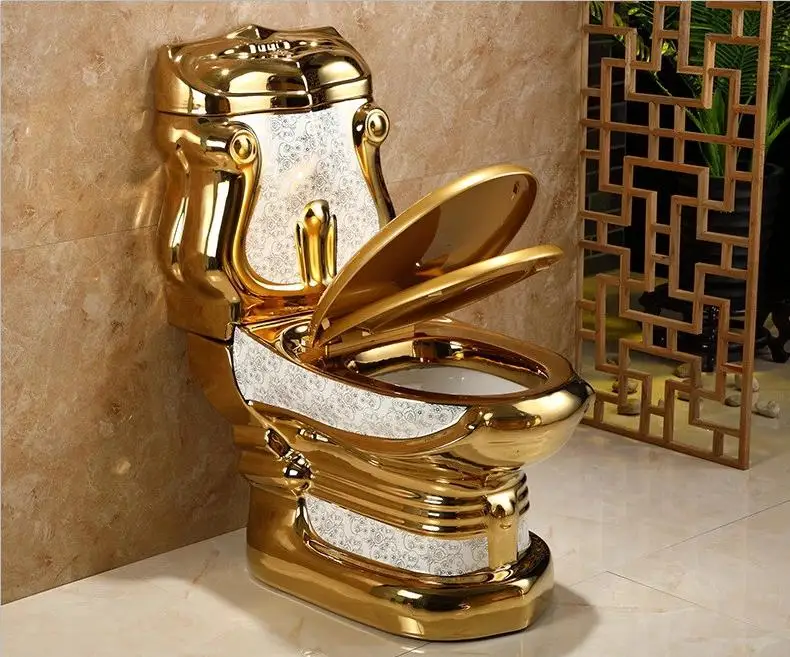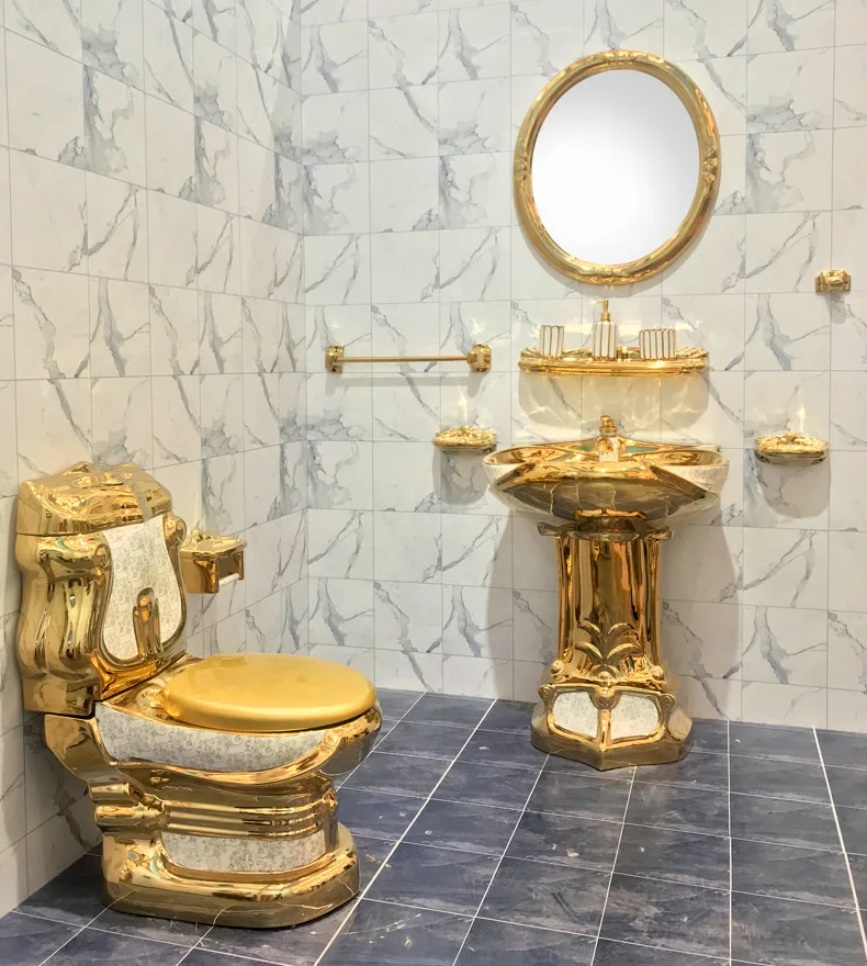 Hot selling ceramic sanitary ware two piece commode pedestal basin luxury gold toilet set