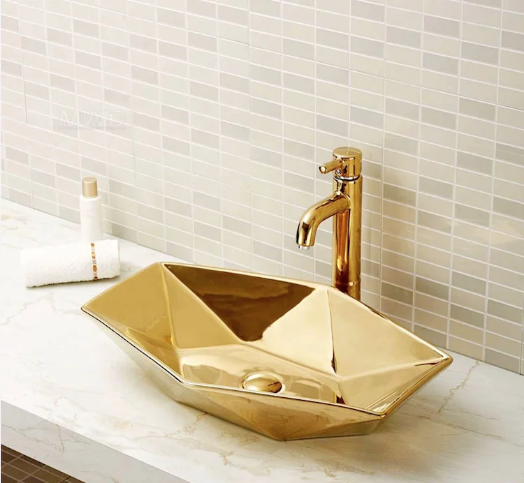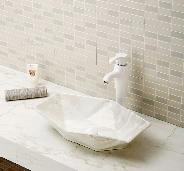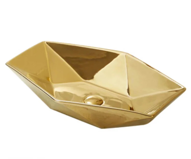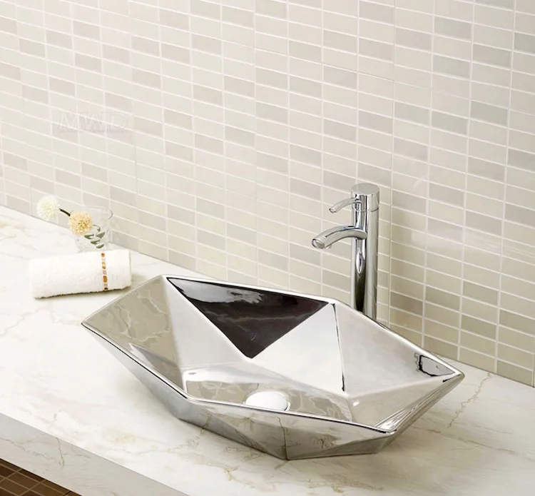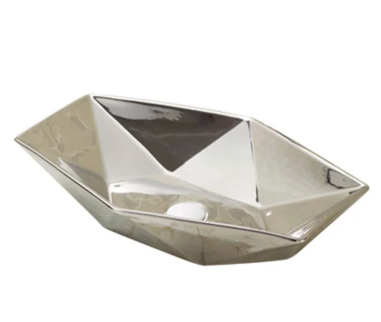 Home Bathroom Products,Sinks Wash Basin Chaozhou City Chao'an District Dengtang Town, Hengmei Ceramic Factory Hotel Luxury silver color basin bathroom Diamond shape Rustic ceramic countertop sinks