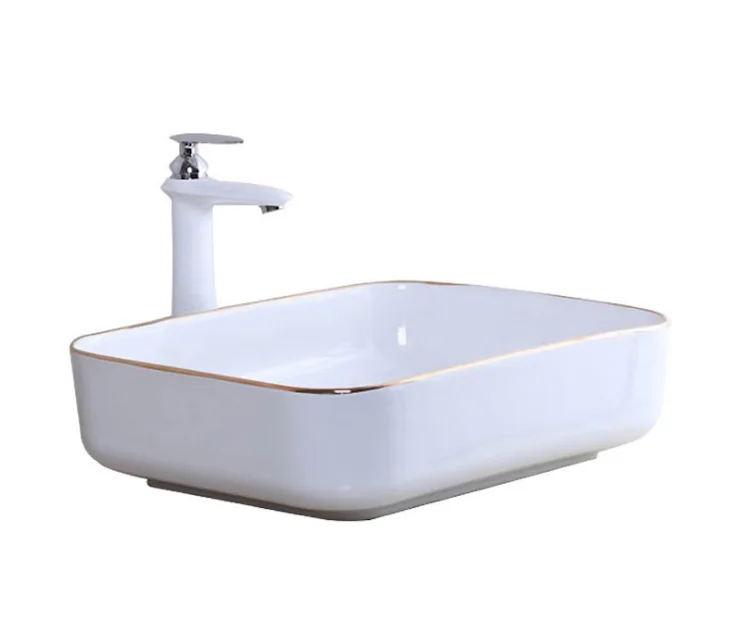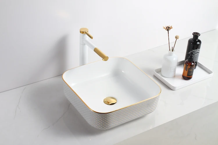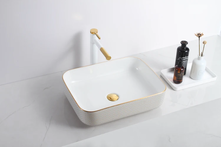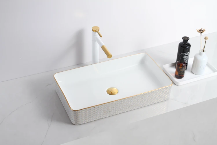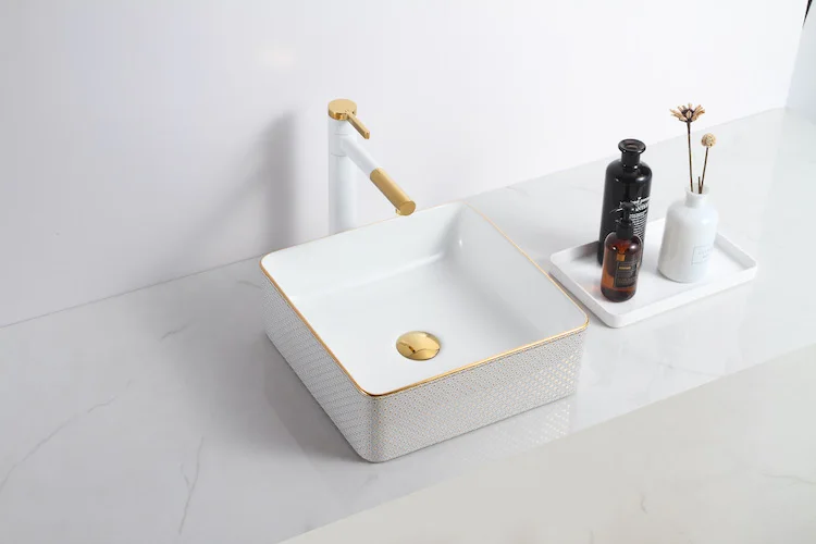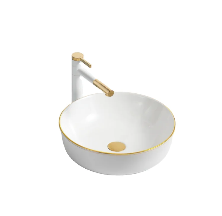 Chaozhou high end design white and gold color basin ceramic countertop bowl sinks