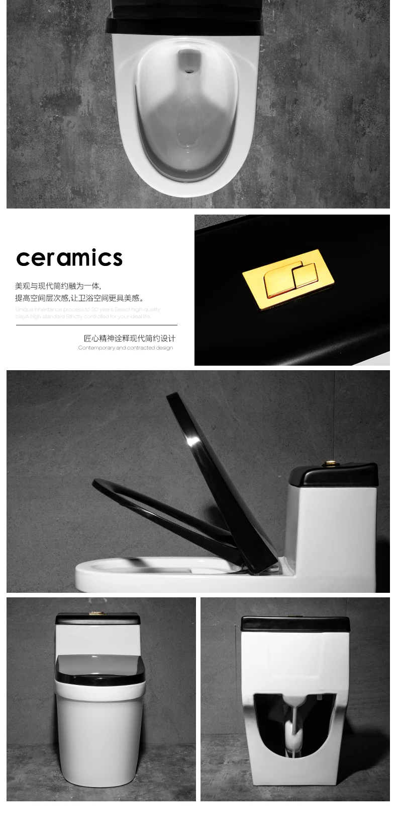 New arrival toilet bathroom black color one piece sanitary ware siphon flush commode toilet bowl water closet