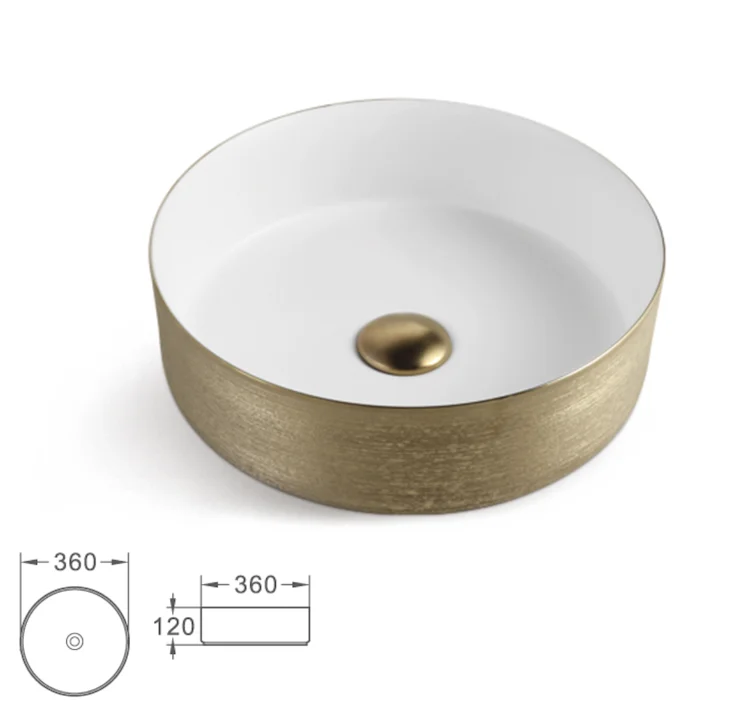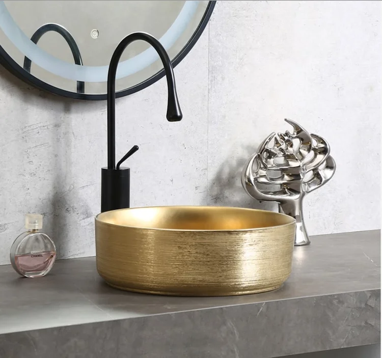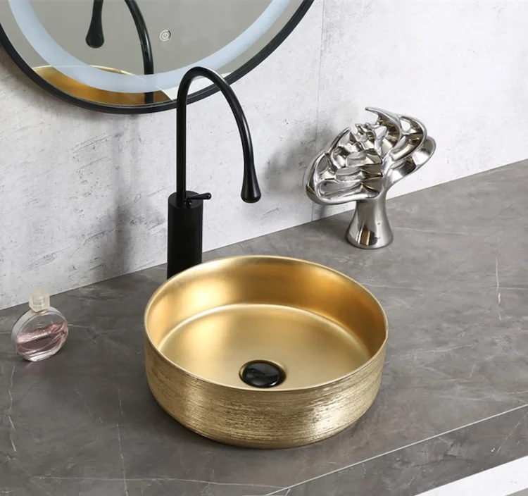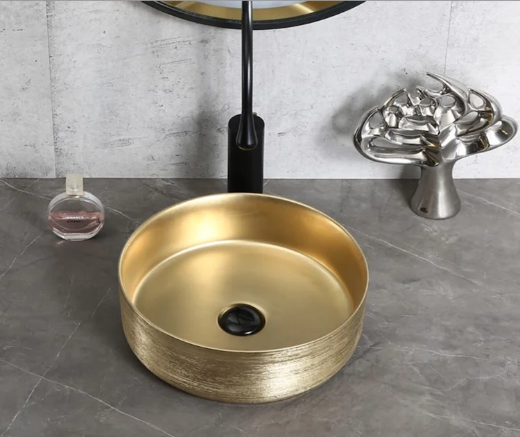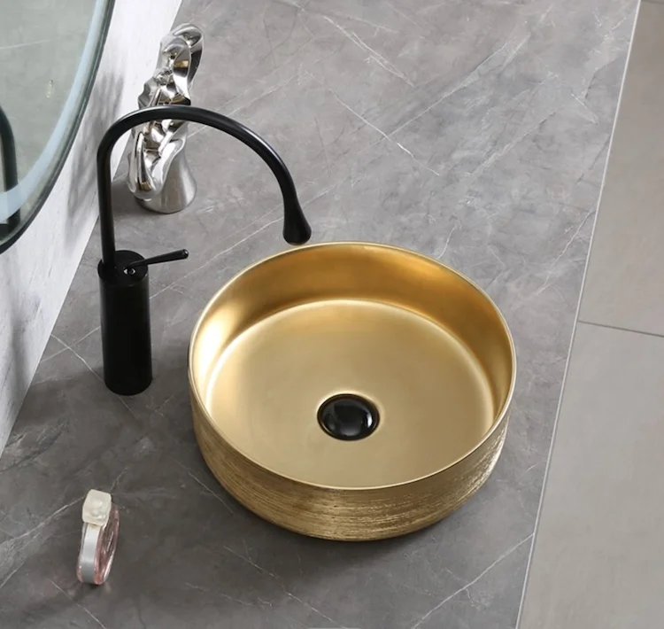 Hot sale Middle East luxury golden color basin bathroom ceramic countertop bowl sinks