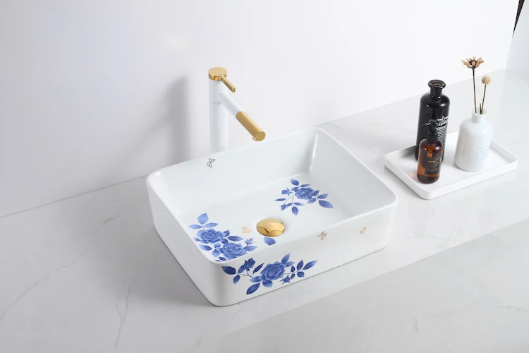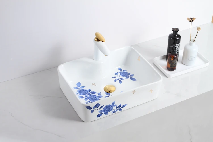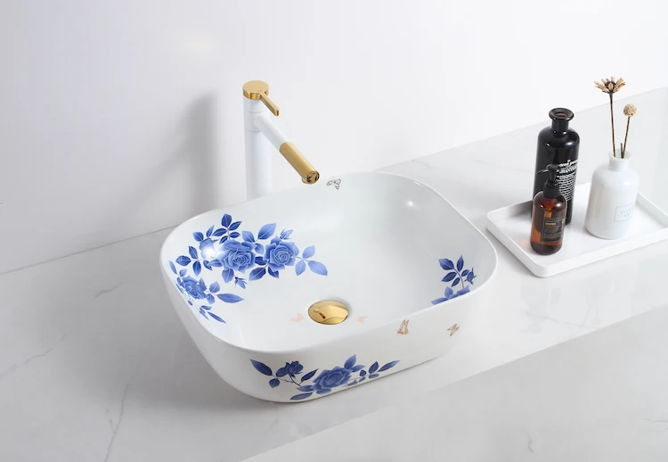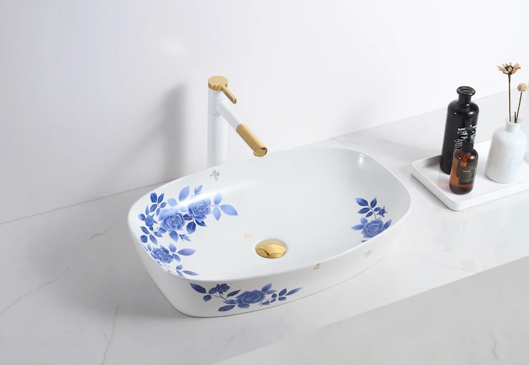 Home Bathroom Products,Sinks Wash Basin Chaozhou City Chao'an District Dengtang Town, Hengmei Ceramic Factory Top 1 sale Oval blue and white pottery design white color basin bathroom ceramic countertop bowl sinks