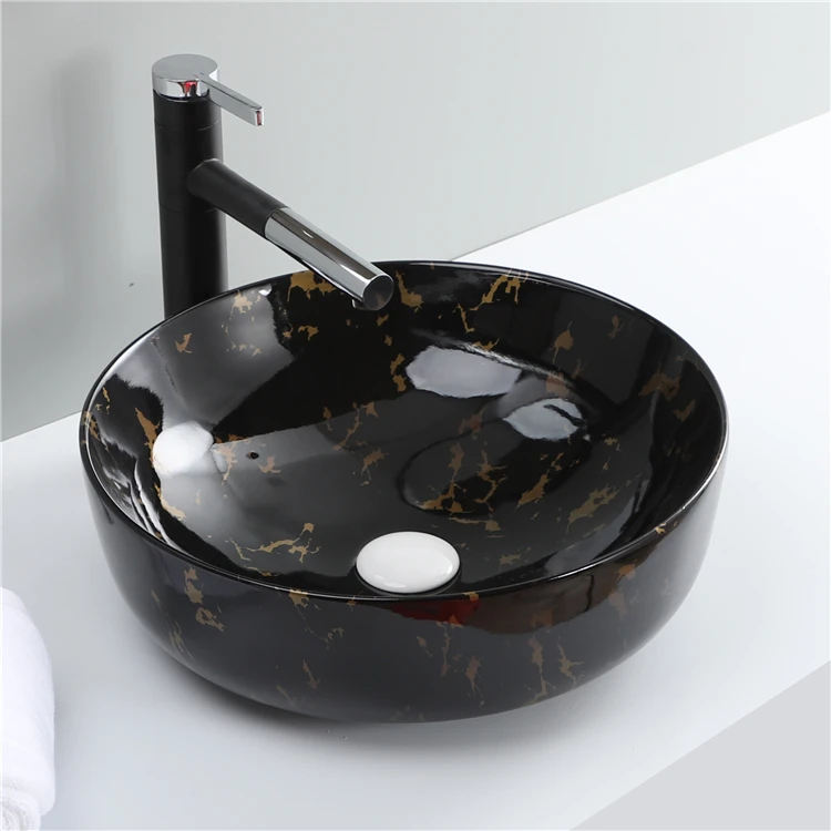 Home Bathroom Products,Sinks Wash Basin Chaozhou City Chao'an District Dengtang Town, Hengmei Ceramic Factory Cheap Price Ceramic Water Transfer Marble Black Wash Hand Basin Bathroom Sink 1 buyer