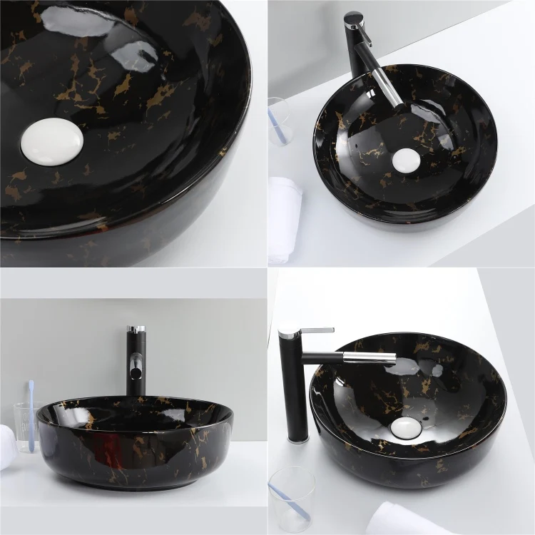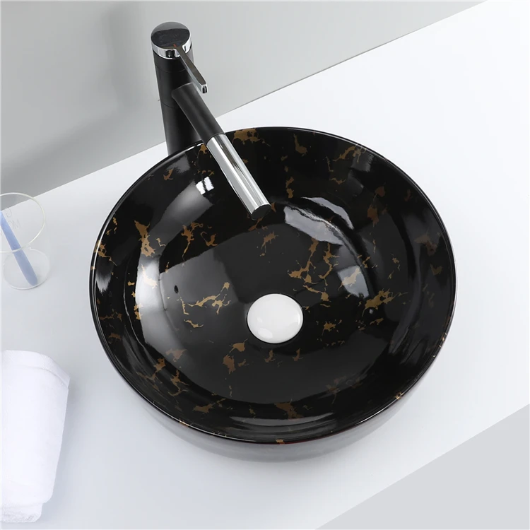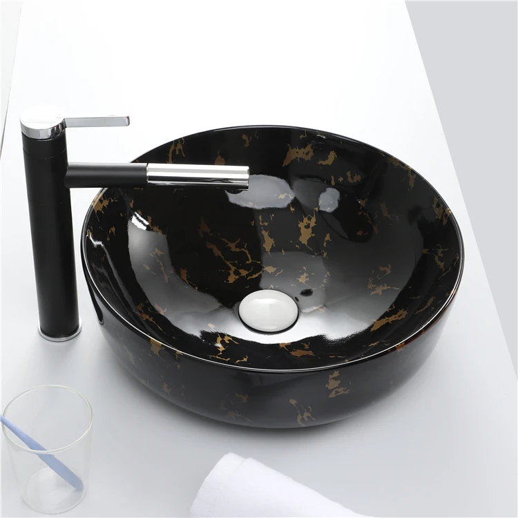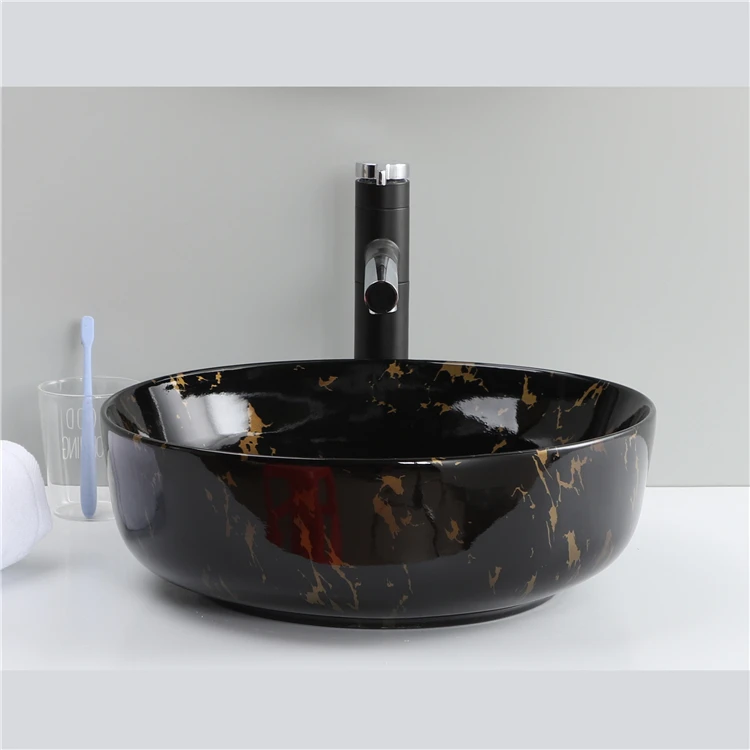 Cheap Price Ceramic Water Transfer Marble Black Wash Hand Basin Bathroom Sink 1 buyer