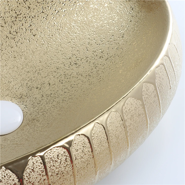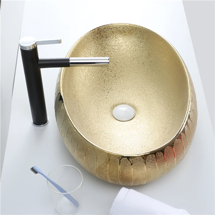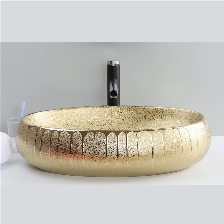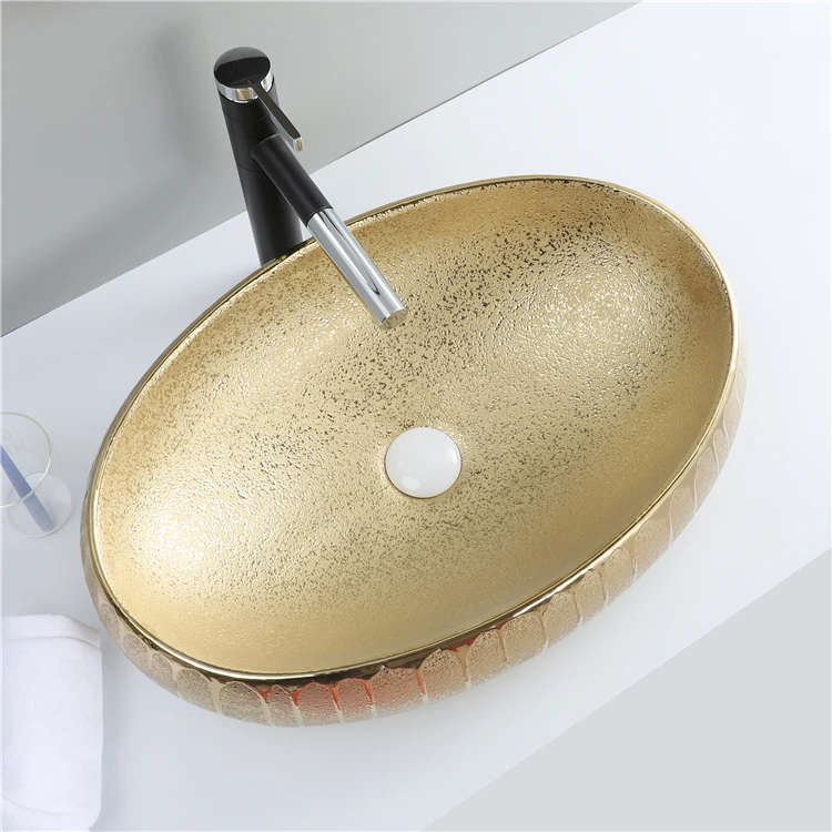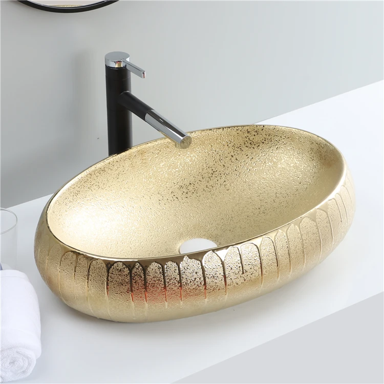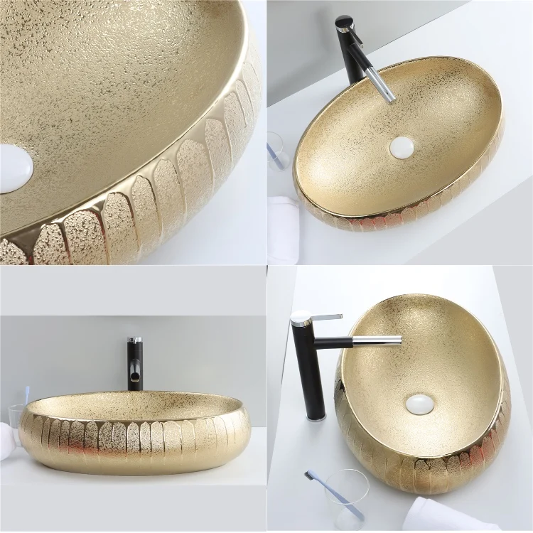 Good Sale Luxury Oval Ceramic Golden Table Top Wash Basin For Bathroom