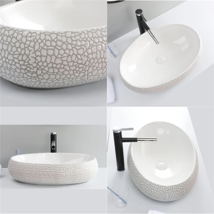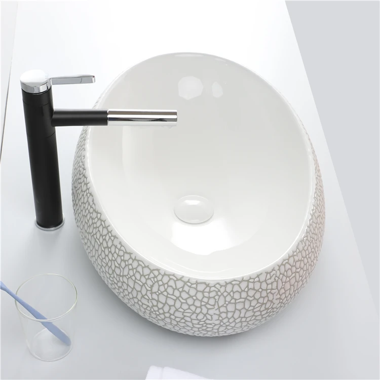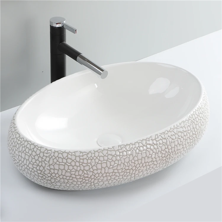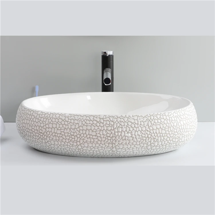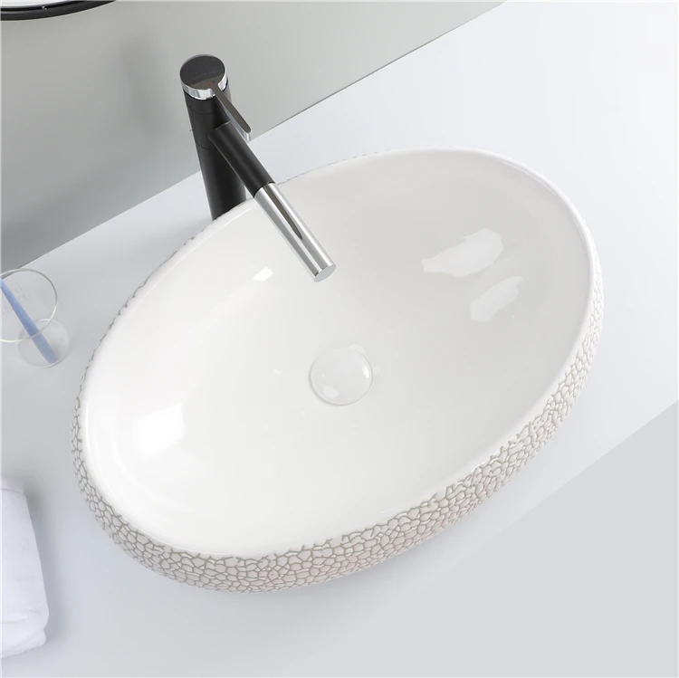Home Bathroom Products,Sinks Wash Basin Chaozhou City Chao'an District Dengtang Town, Hengmei Ceramic Factory Fashion Style Hotel Bathroom Art Modern Ceramic Oval Shape Tabletop Wash Basin