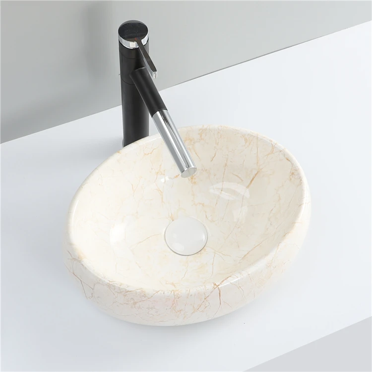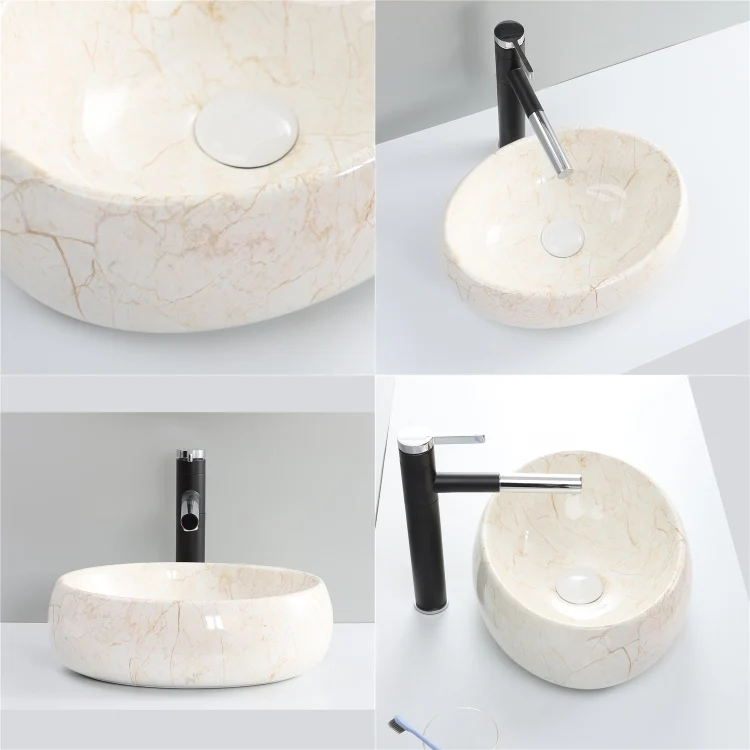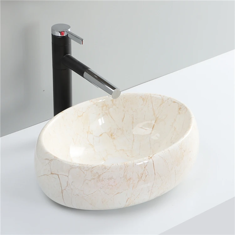 Good Price Oval Shape Sink Bathroom Ceramic Marble Table Top Wash Basin