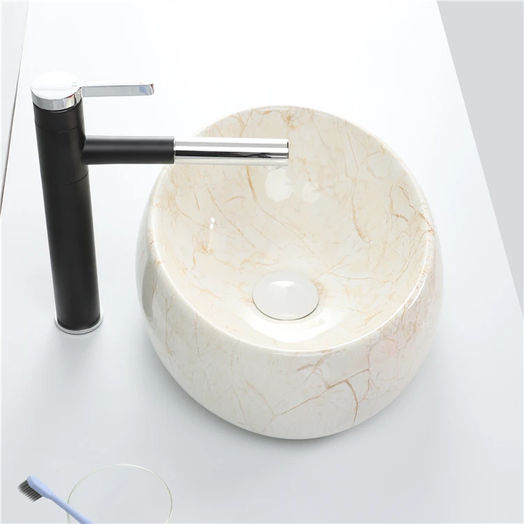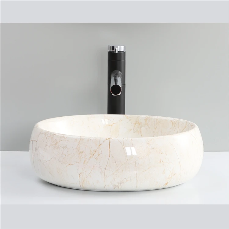 Home Bathroom Products,Sinks Wash Basin Chaozhou City Chao'an District Dengtang Town, Hengmei Ceramic Factory Good Price Oval Shape Sink Bathroom Ceramic Marble Table Top Wash Basin