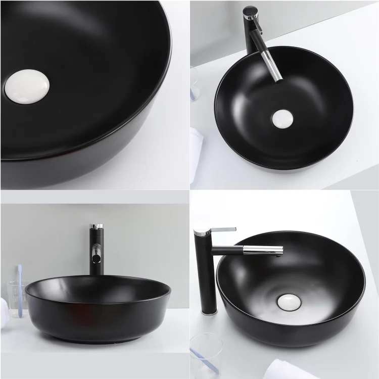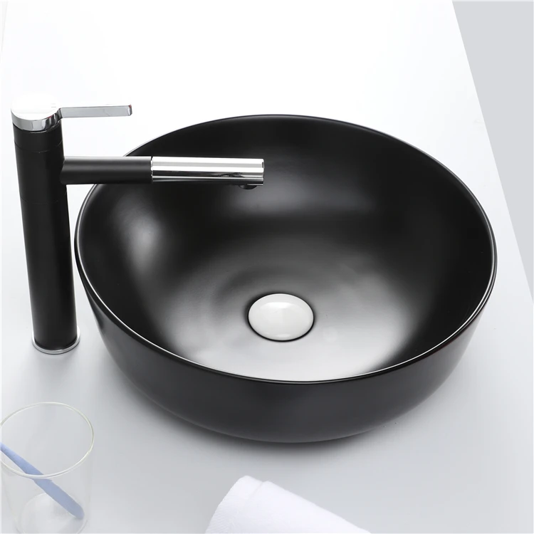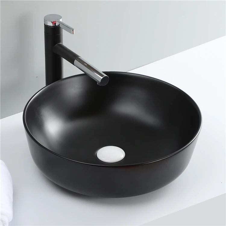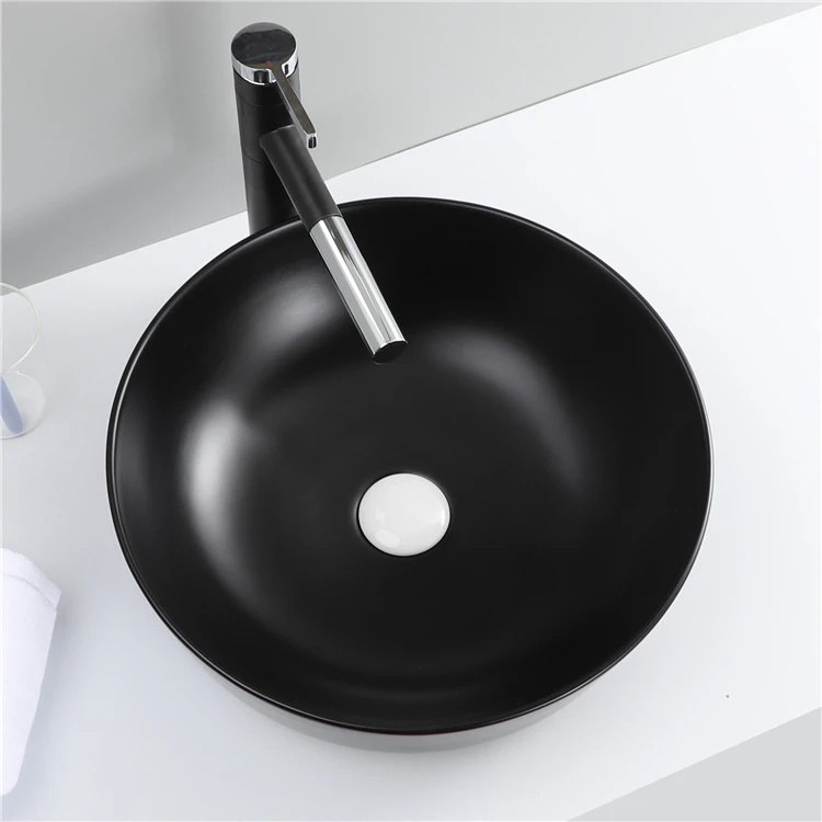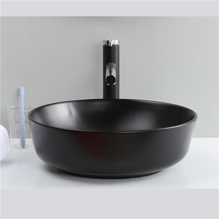 New Arrive Bathroom Matte Black Round Countertop Sink Ceramic Basin Washbasin