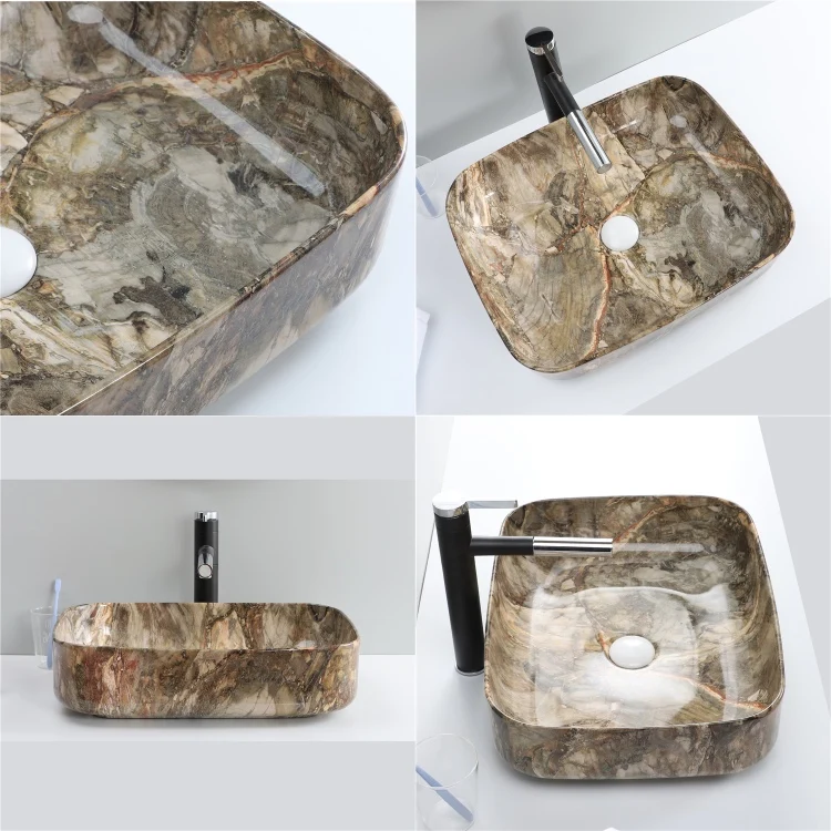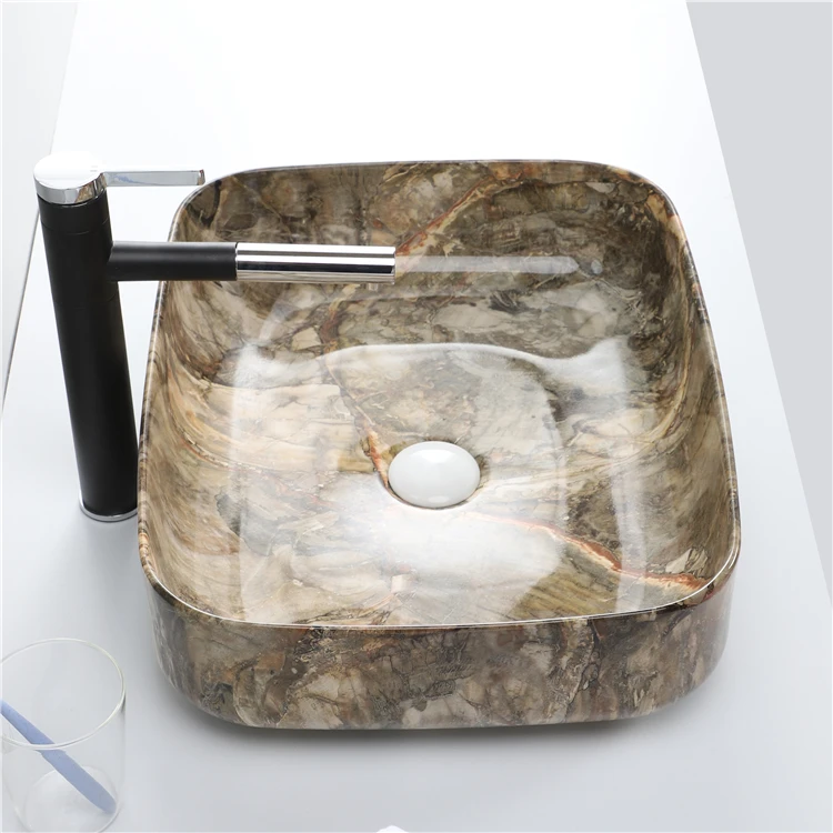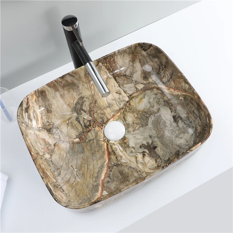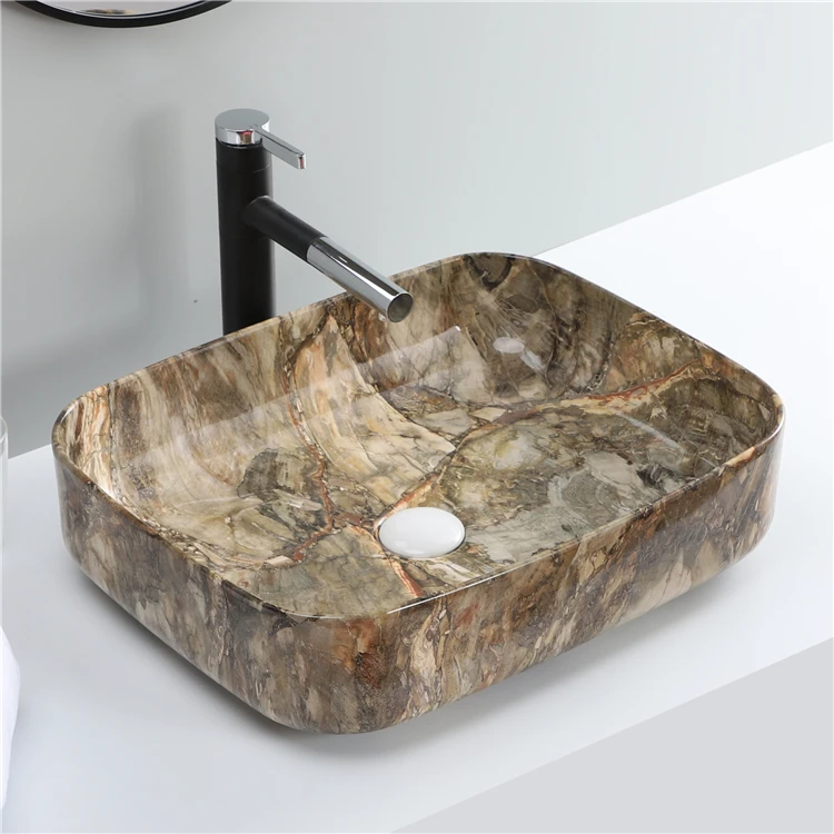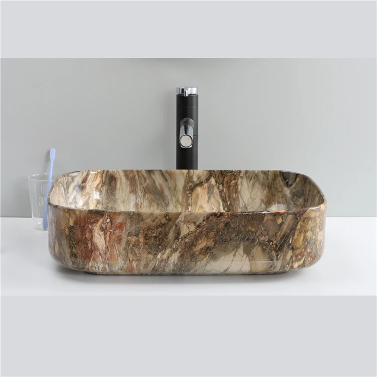 Hot Sale classic Marble Face Lavatory Rectangle Ceramic Wash Basin Bathroom Sink