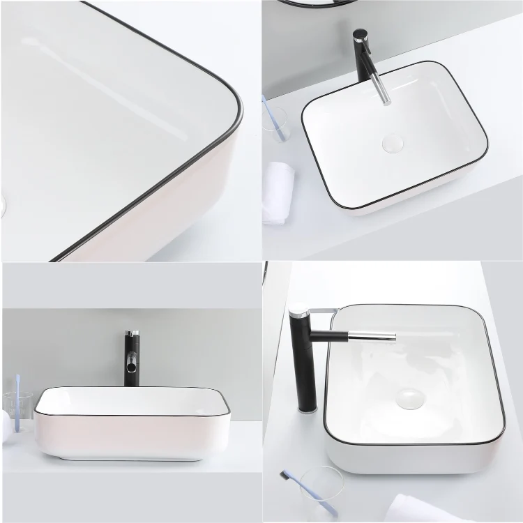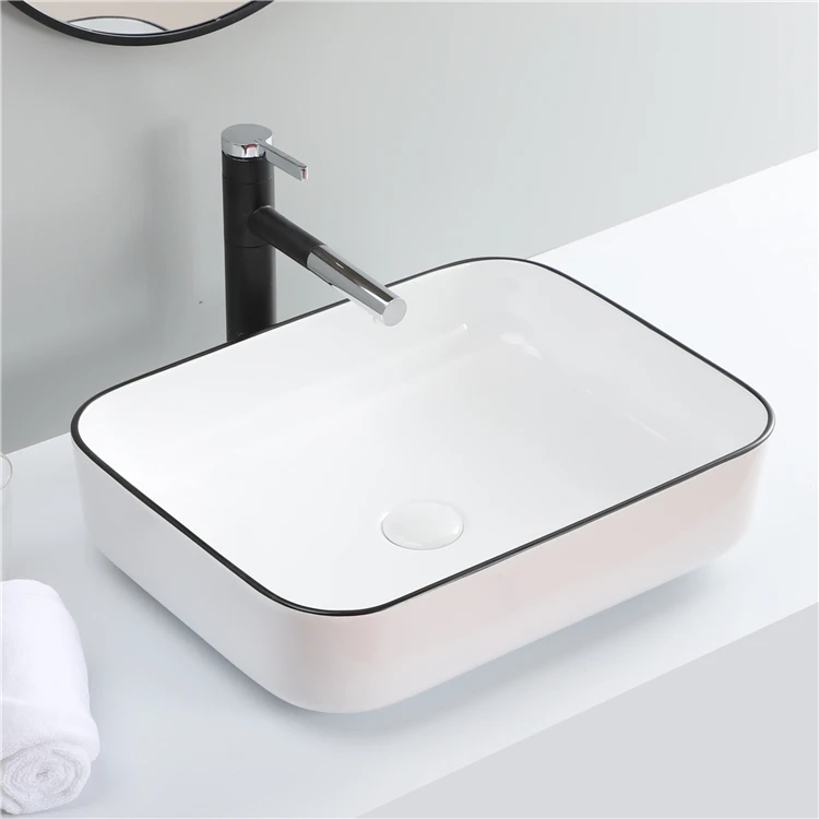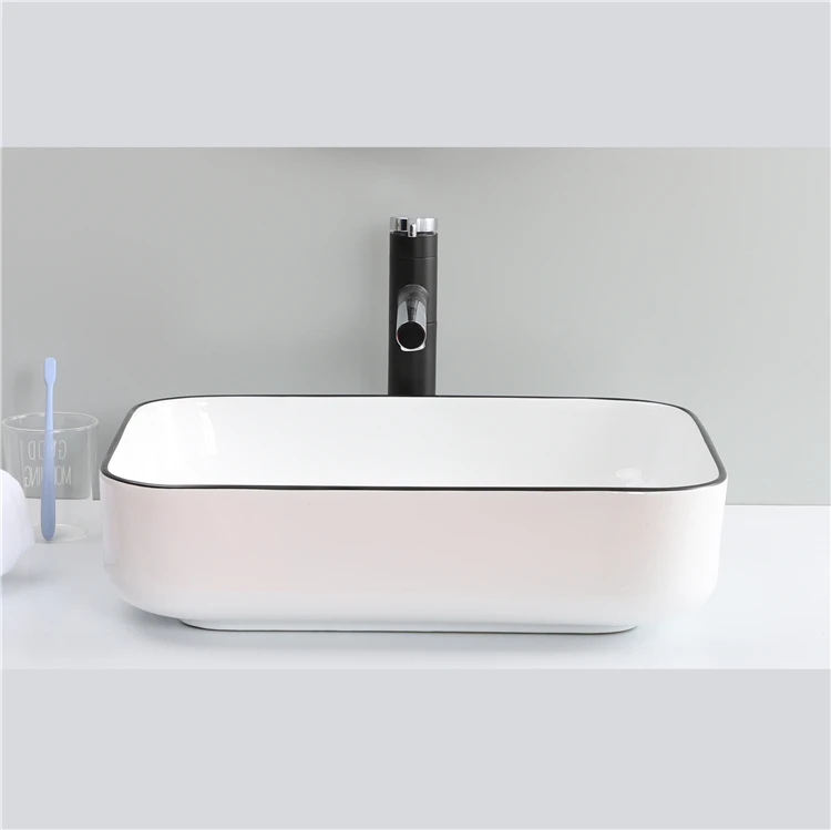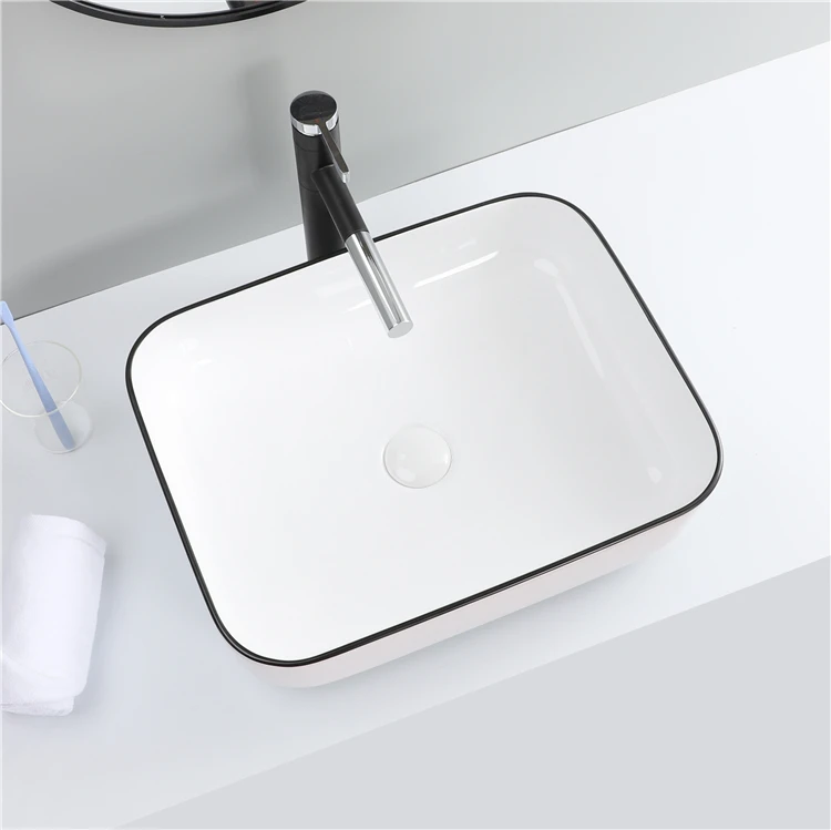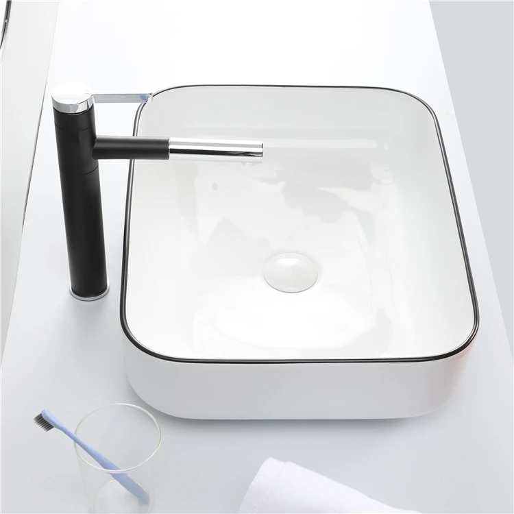 Hot Sale Lavabo Bathroom Ceramic Countertop Black Line Color Wash Basin