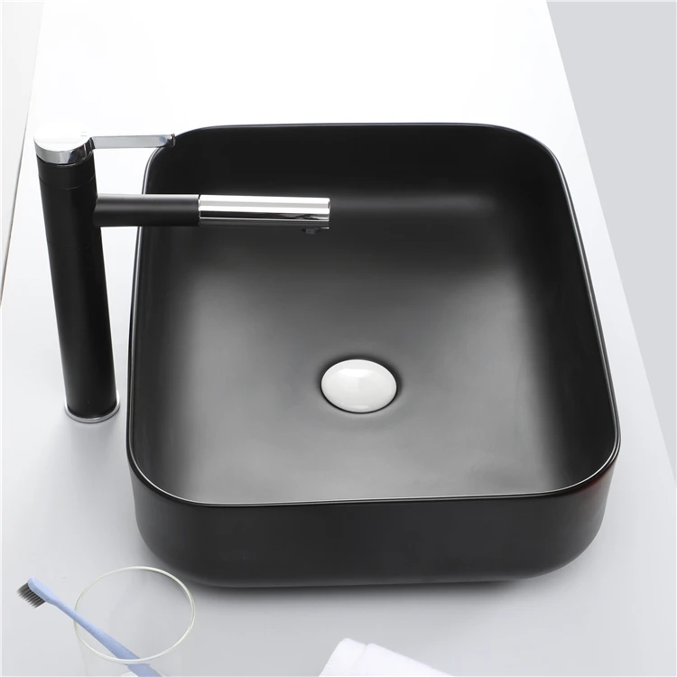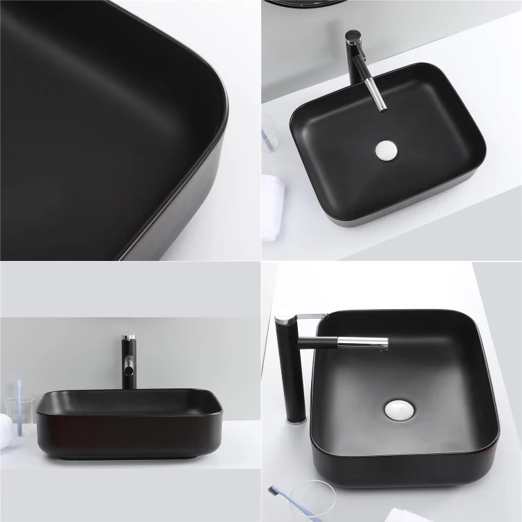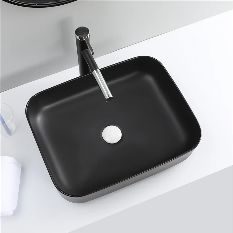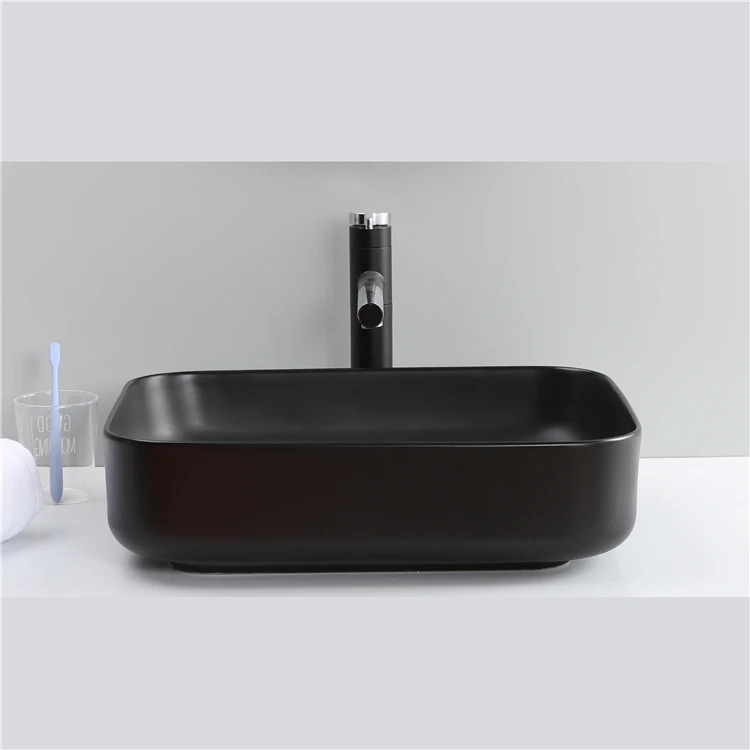 Home Bathroom Products,Sinks Wash Basin Chaozhou City Chao'an District Dengtang Town, Hengmei Ceramic Factory Newly Designed Energy Saving Ceramic Countertop Matt Black Hotel Wash Basin