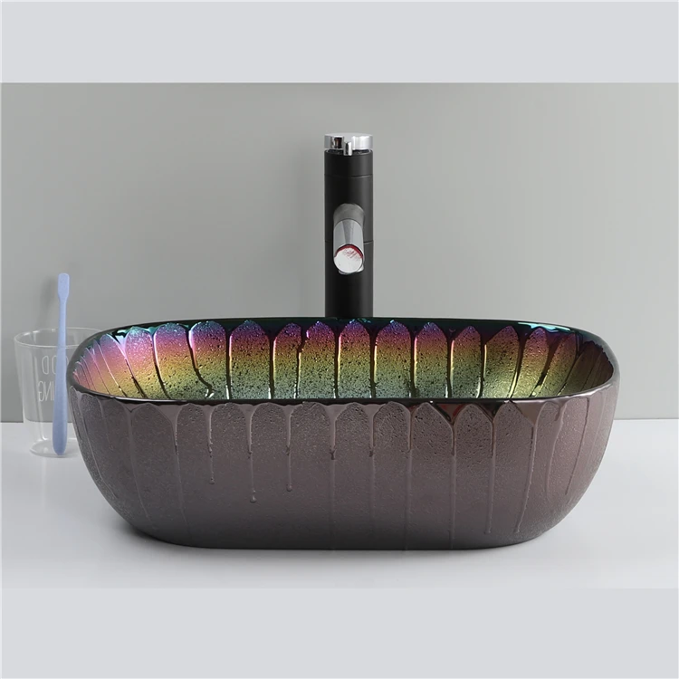 Factory Price Plated Colorful Decorated Countertop Ceramic Wash Art Basin