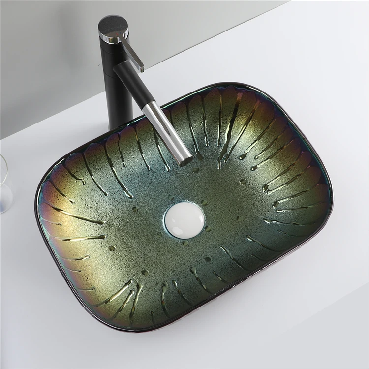 Home Bathroom Products,Sinks Wash Basin Chaozhou City Chao'an District Dengtang Town, Hengmei Ceramic Factory Factory Price Plated Colorful Decorated Countertop Ceramic Wash Art Basin