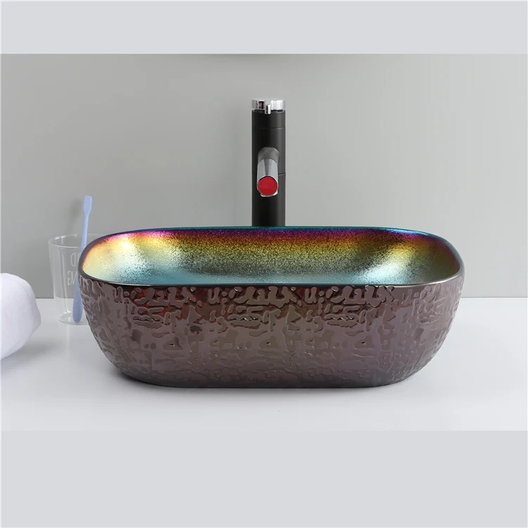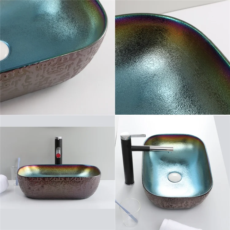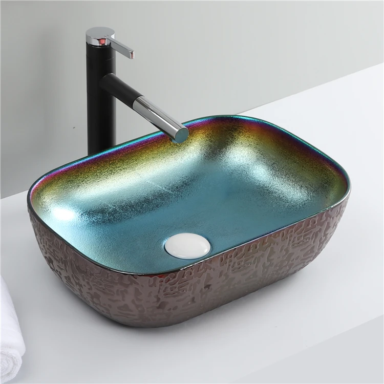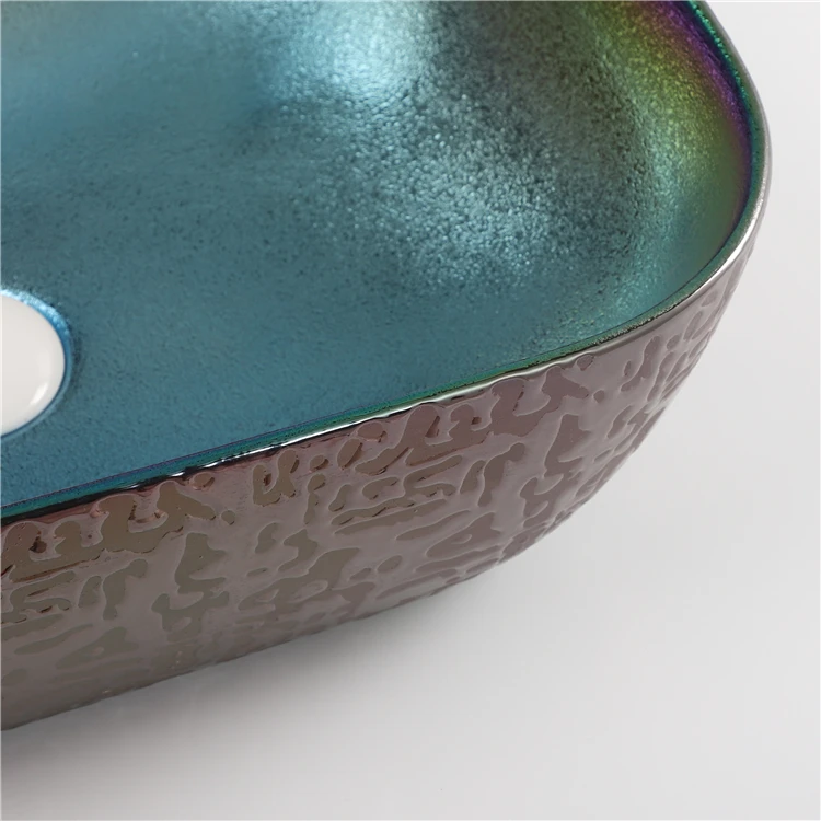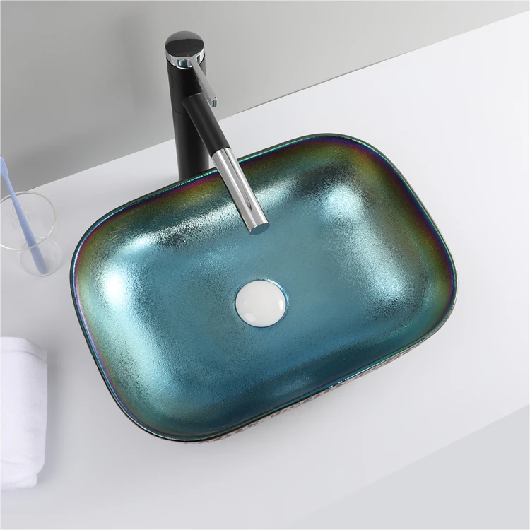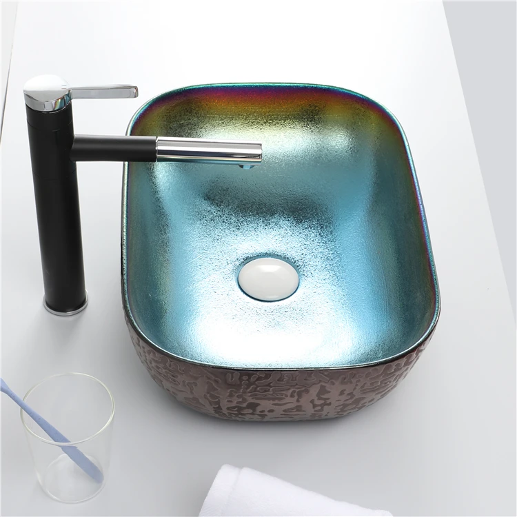 Home Bathroom Products,Sinks Wash Basin Chaozhou City Chao'an District Dengtang Town, Hengmei Ceramic Factory Cheap Price Wash Basin Hand Plating Blue Colored Bowl Sink Table Bathroom
