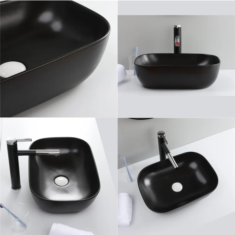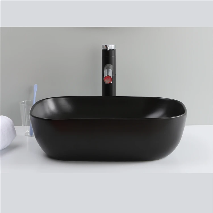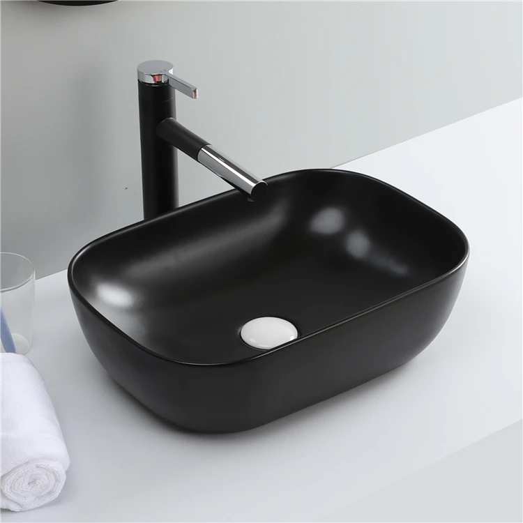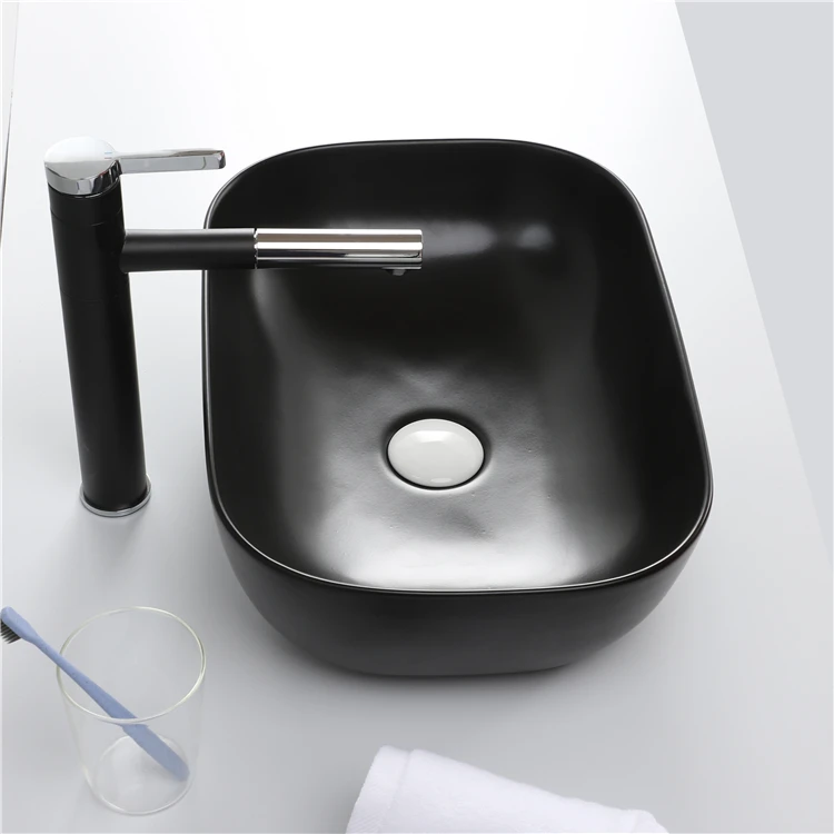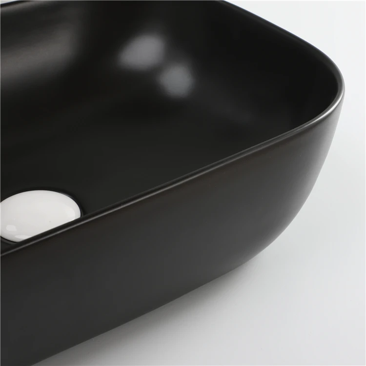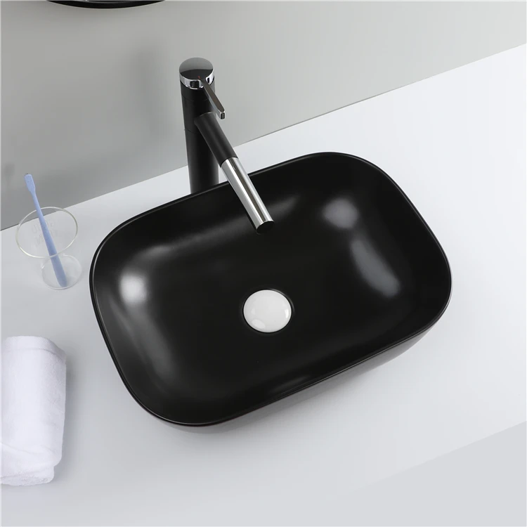 Cheap Price Classic Modern Design Above Matt Black Wash Ceramic Counter Top Rectangular Lavabo Art Tabletop Basin Bathroom Sink