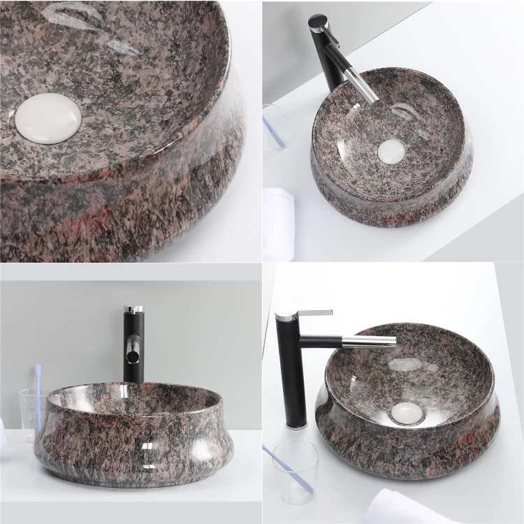 Home Bathroom Products,Sinks Wash Basin Chaozhou City Chao'an District Dengtang Town, Hengmei Ceramic Factory Chaozhou Factory Ceramic Round Marble Counter Top Sink Wash Hand Basin Bathroom