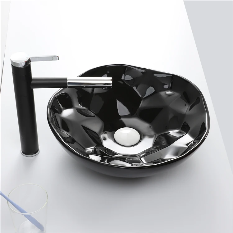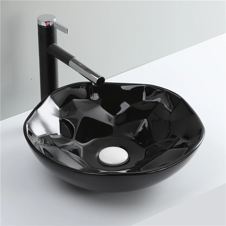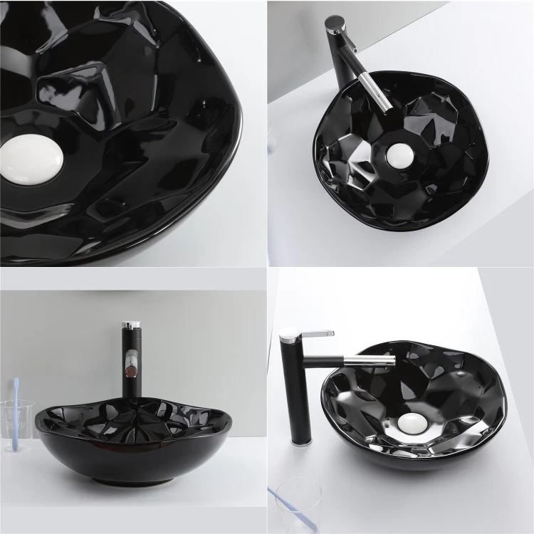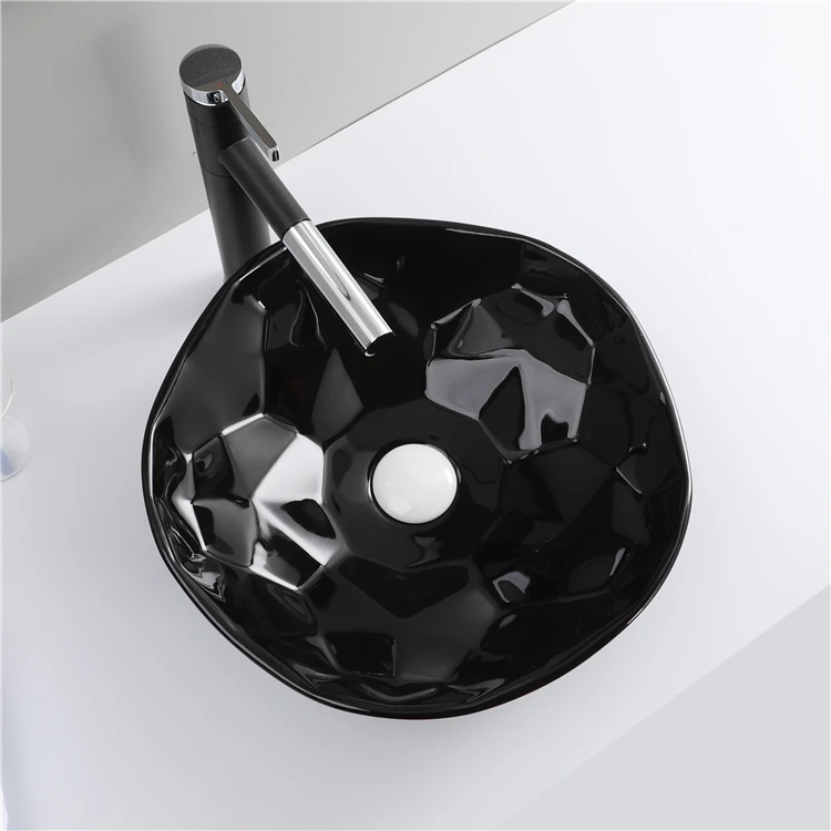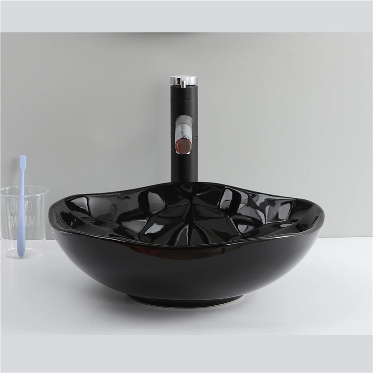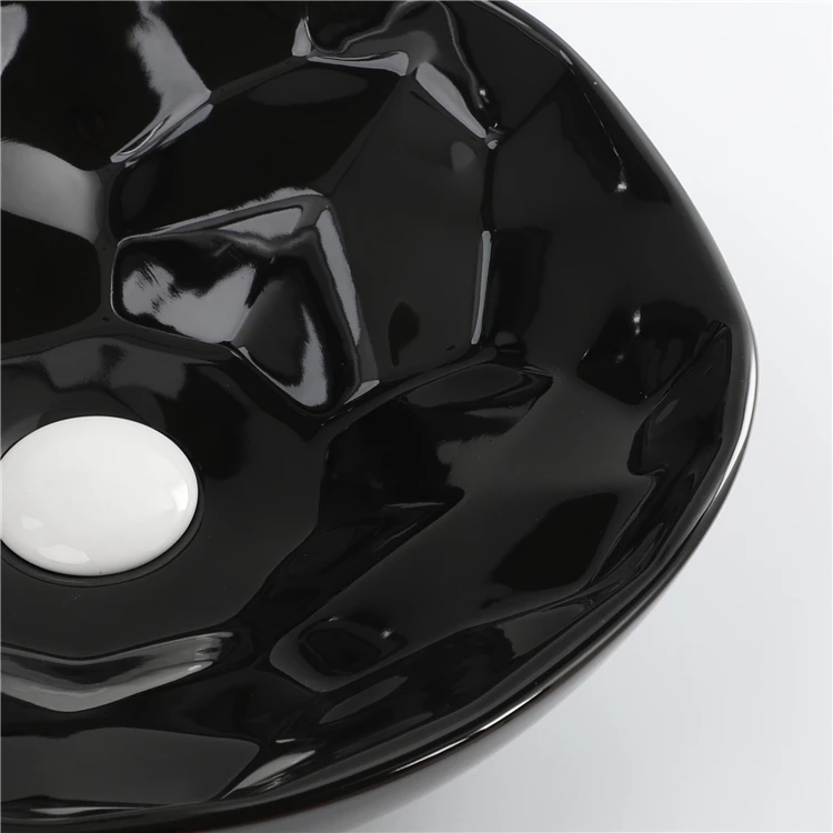 Home Bathroom Products,Sinks Wash Basin Chaozhou City Chao'an District Dengtang Town, Hengmei Ceramic Factory Good Quality Glossy Black Round Ceramic Table Top Face Basin Bathroom