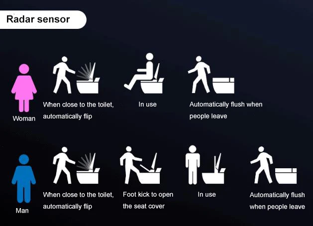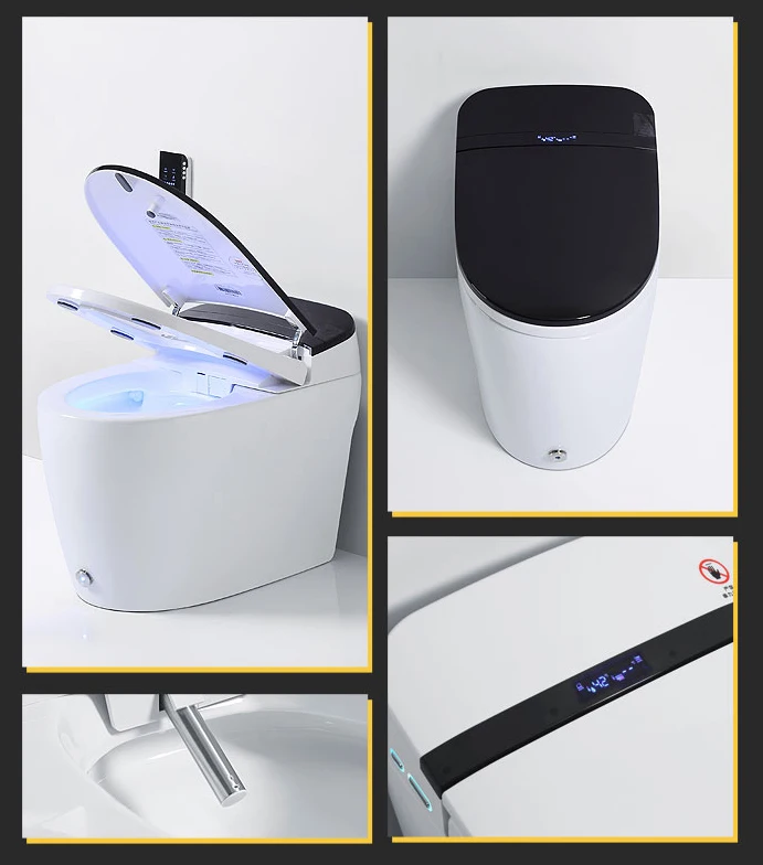 Factory Wholesale bathroom toilets one piece kicking automatic flushing washroom smart intelligent wc black color toilet