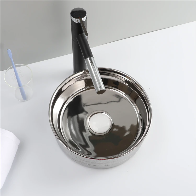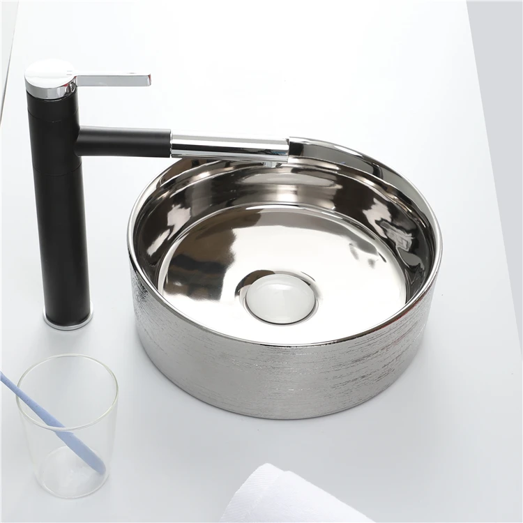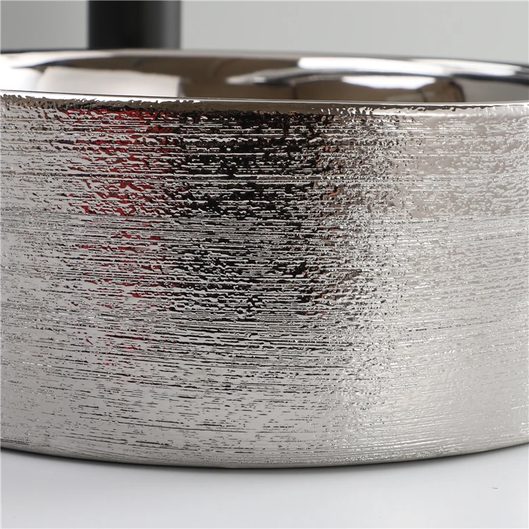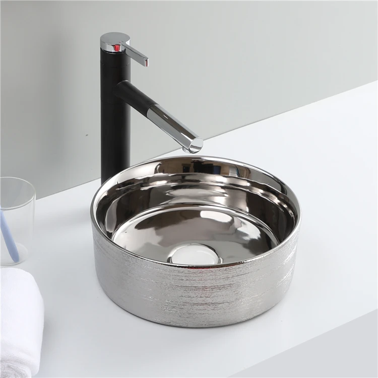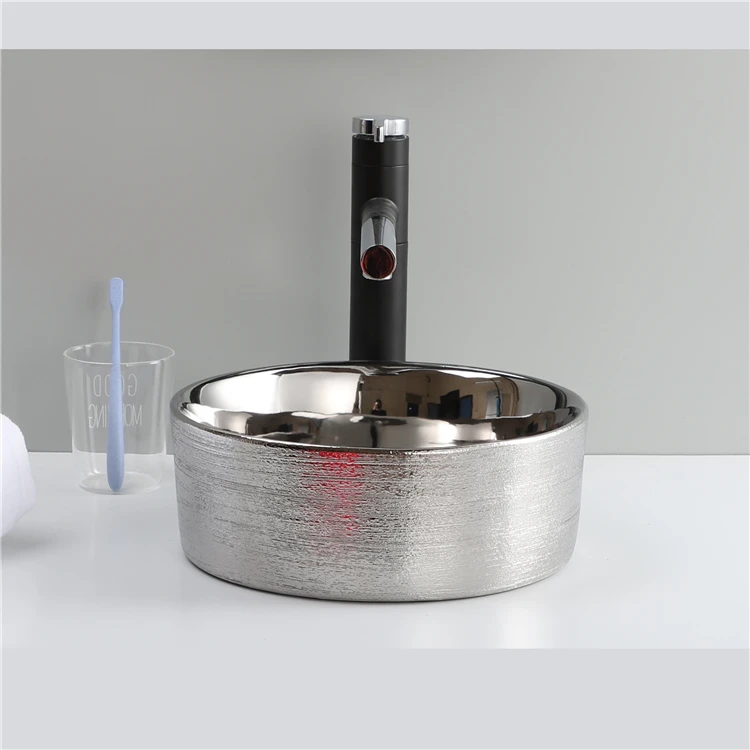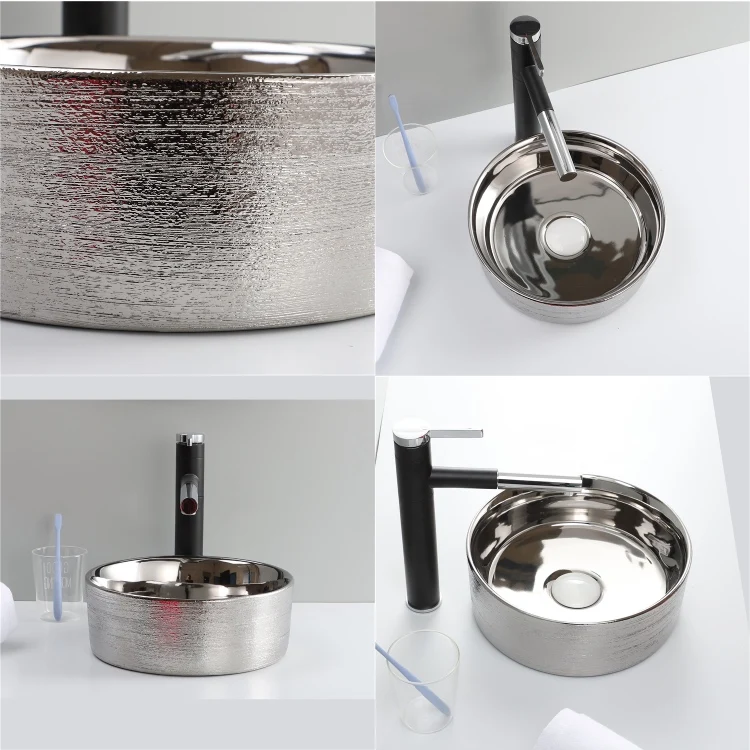 Hot Sale Round Silver Plated Washbasin Sink Bathroom Ceramic Art Basin Sink