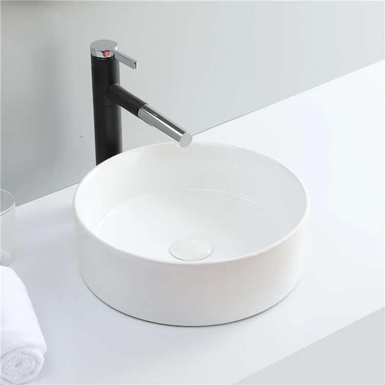Good Sale Ceramic Supplier Table Top Wash Basin Round White Bathroom Basin Sink