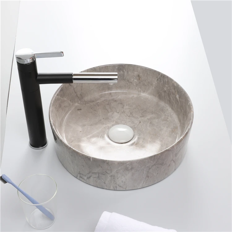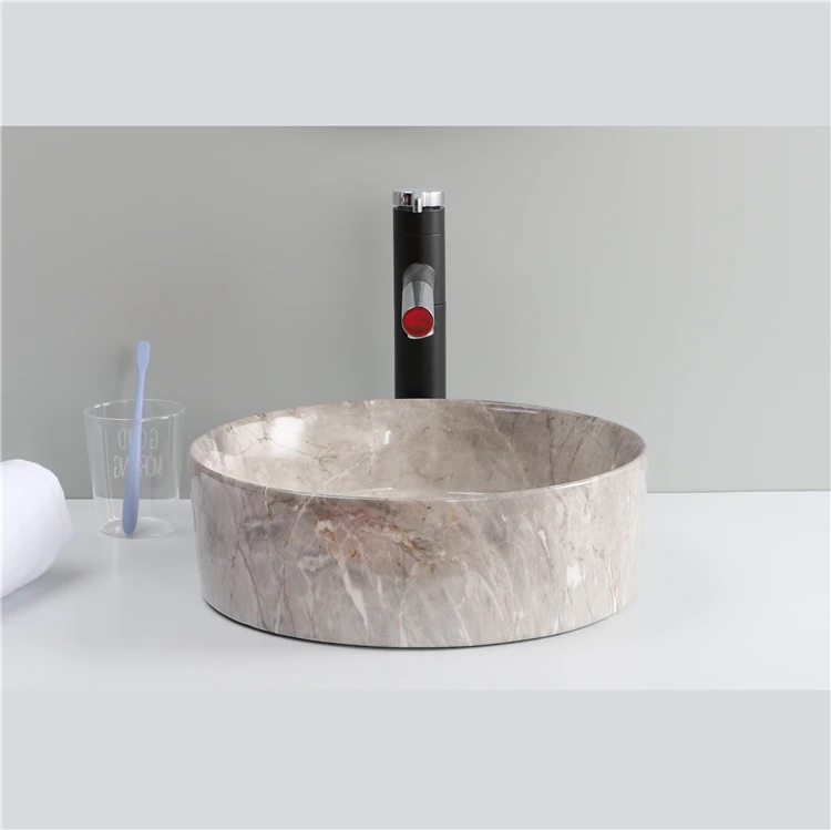 Home Bathroom Products,Sinks Wash Basin Chaozhou City Chao'an District Dengtang Town, Hengmei Ceramic Factory Hot Sale Ceramic Luxury Decorative Cultured Marble Counter Top Lavatory Art Wash Basin Round Sink